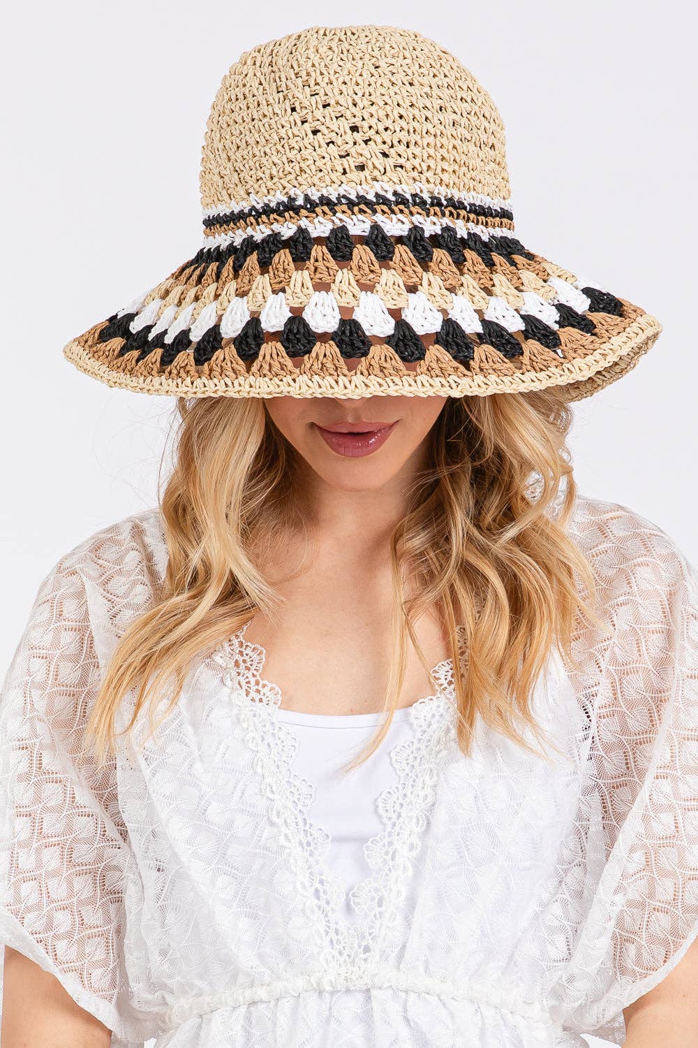 CAPPELLO A TESA LARGA, FASCIA CONCHIGLIA IN VISCOSA