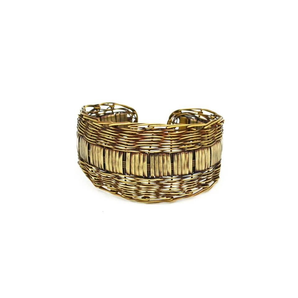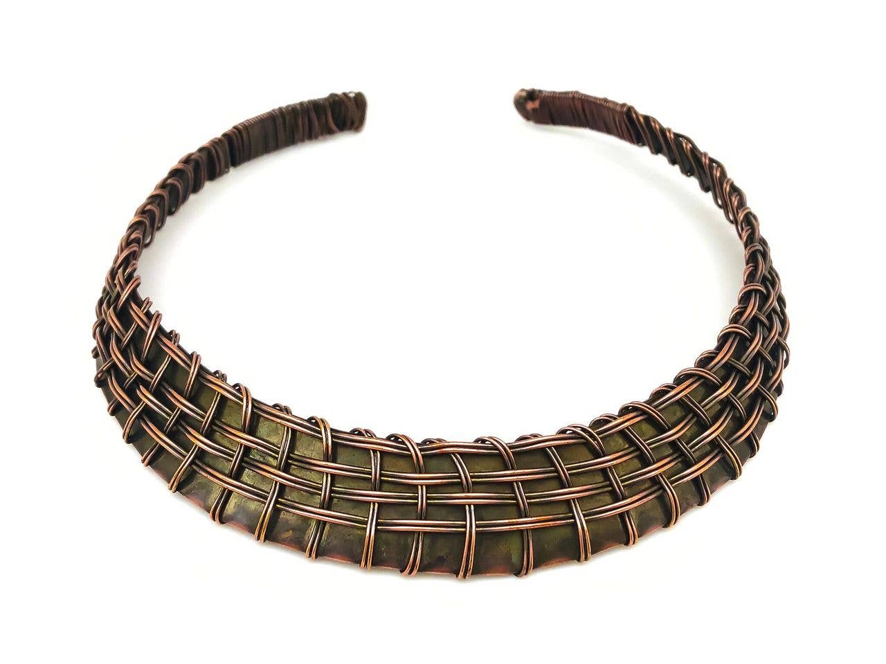 Ancora nessuna recensione per Basketweave - Polsino a trama piatta in rame anticato e bordi larghi.