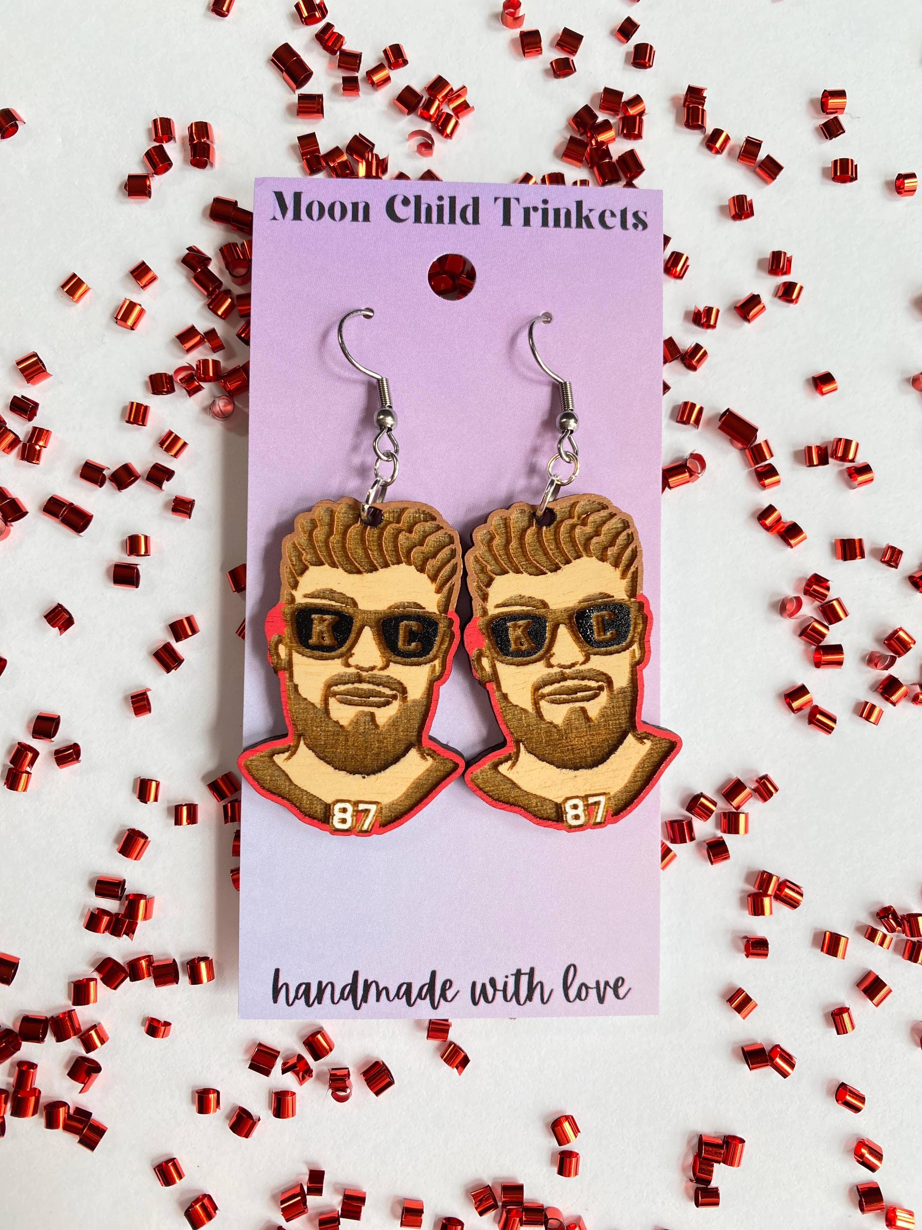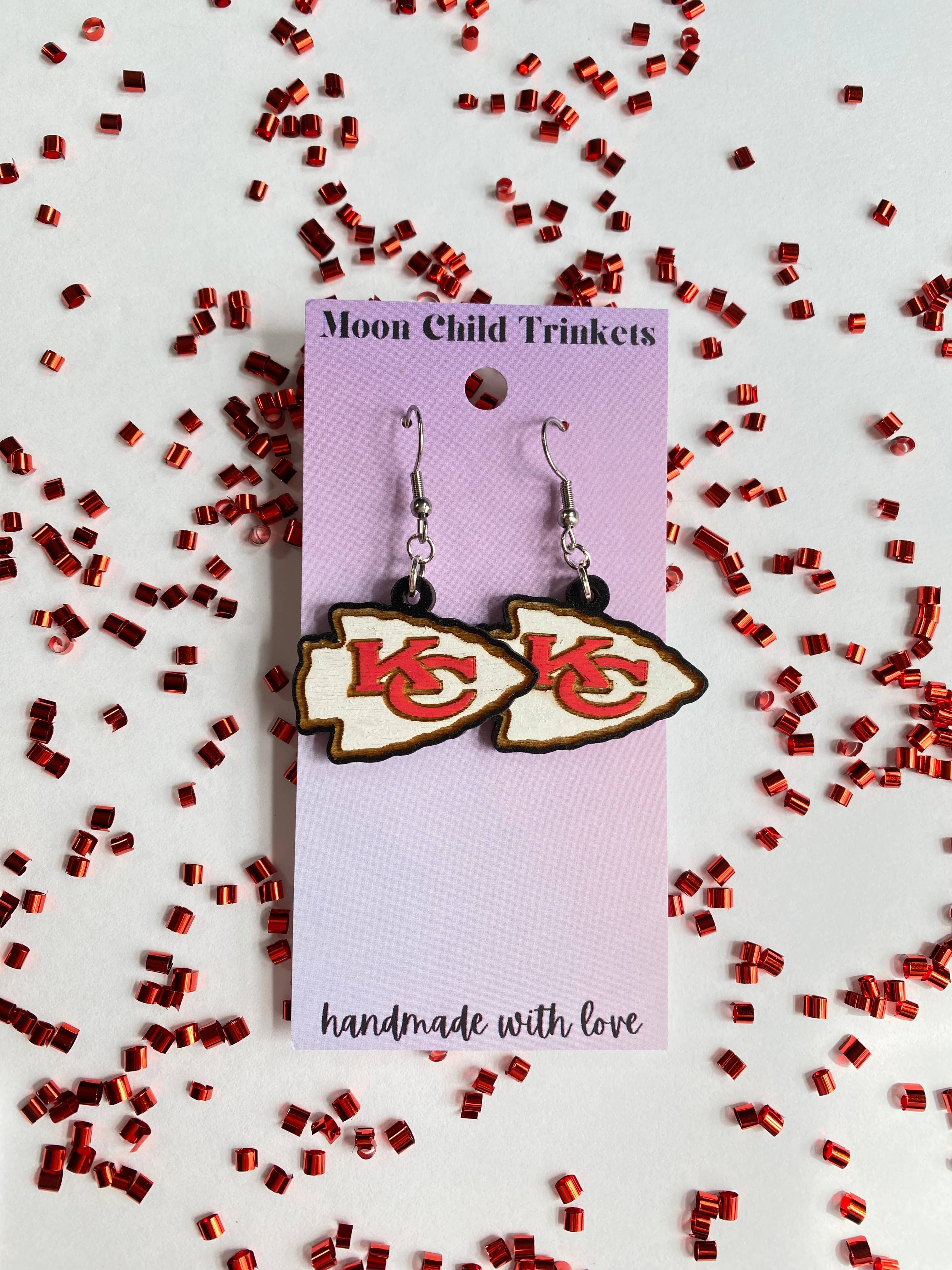 Orecchini in legno dipinti a mano Mahomes Kansas City