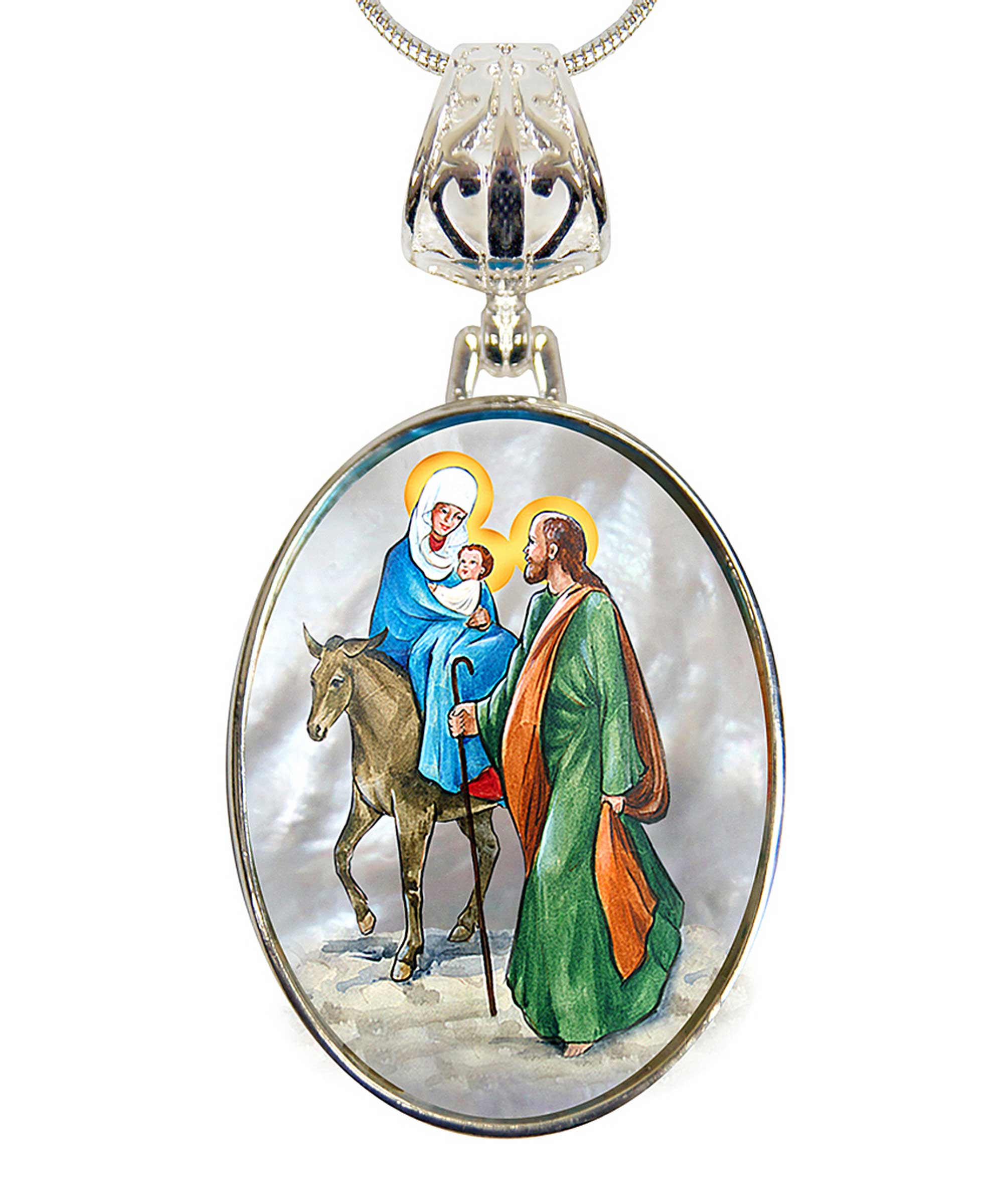 Celebra la devozione senza tempo con questo ciondolo della Vergine Maria, un'affascinante fusione di arte sacra e stile classico. Perfetto per aggiungere un tocco significativo a qualsiasi abbigliamento o come regalo benedetto e premuroso. • Ciondolo placcato in argento su una collana da 18" • Presenta immagini iconiche ispirate alle icone sacre del Vecchio Mondo • Realizzato con attenzione ai dettagli e autenticità artistica • Accessorio versatile per l'uso quotidiano o occasioni speciali • Ideale per i rivenditori che cercano gioielli ispirati spiritualmente Questo pezzo porta eleganza e patrimonio alla tua collezione, invitando i clienti ad abbracciare la fede attraverso l'arte indossabile.