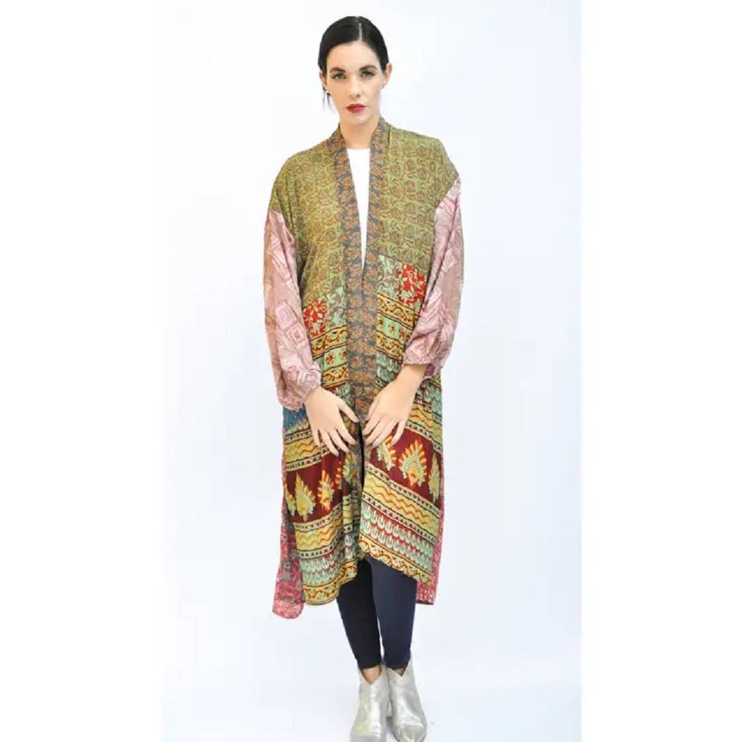 Kimono misto Hillside con fodera - Sari riciclato all'ingrosso