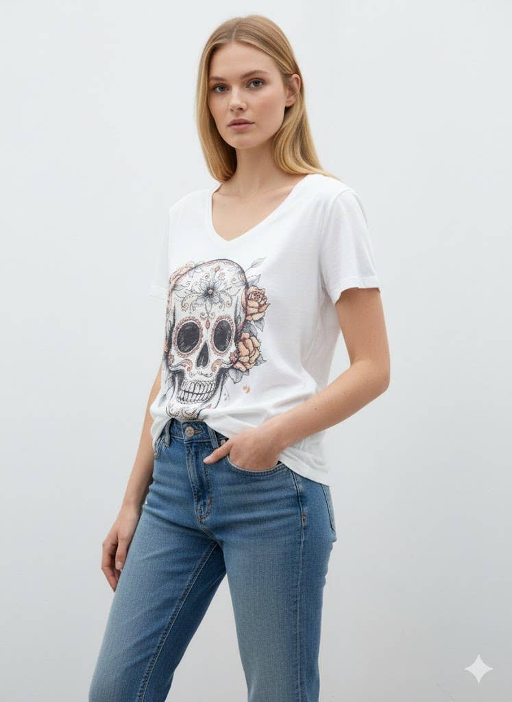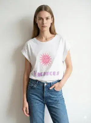 T-shirt taglia unica, adatta per le taglie dal 36 al 42. 100% cotone.