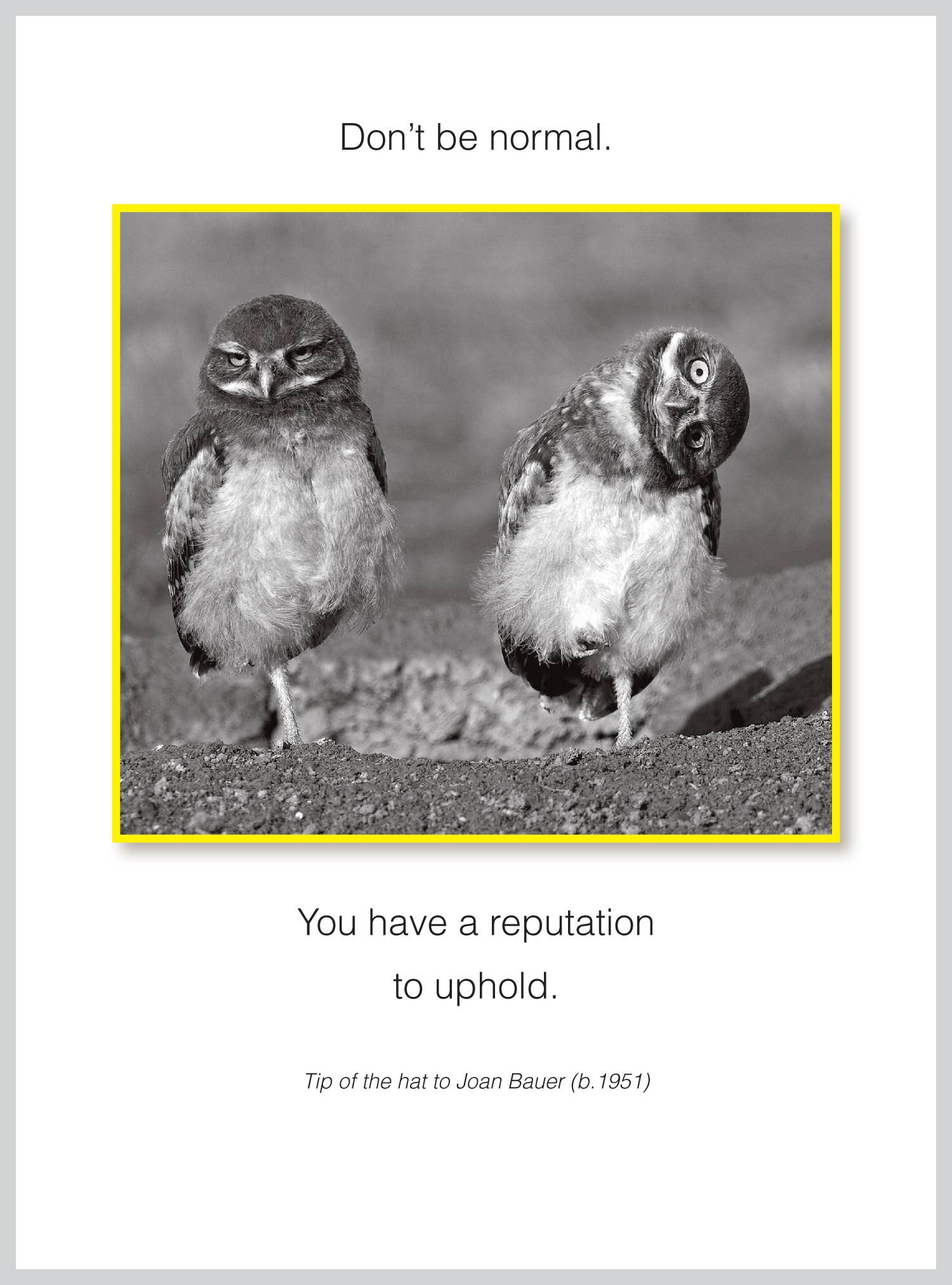 Sii strano. Sii casuale. Biglietto di auguri per tutte le occasioni.