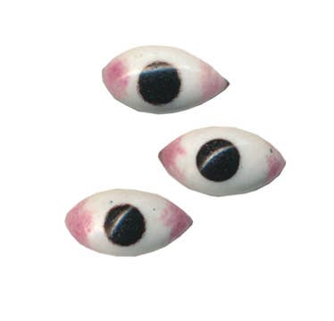 Piccolo occhio di vetro fatto a mano con retro metallico. Gli occhi possono variare. Realizzati a mano in India. Tradizionalmente usati nelle sculture di santi o divinità in pietra per dare vita alle figure. Dimensioni: 1,5 cm x 0,7 cm.
