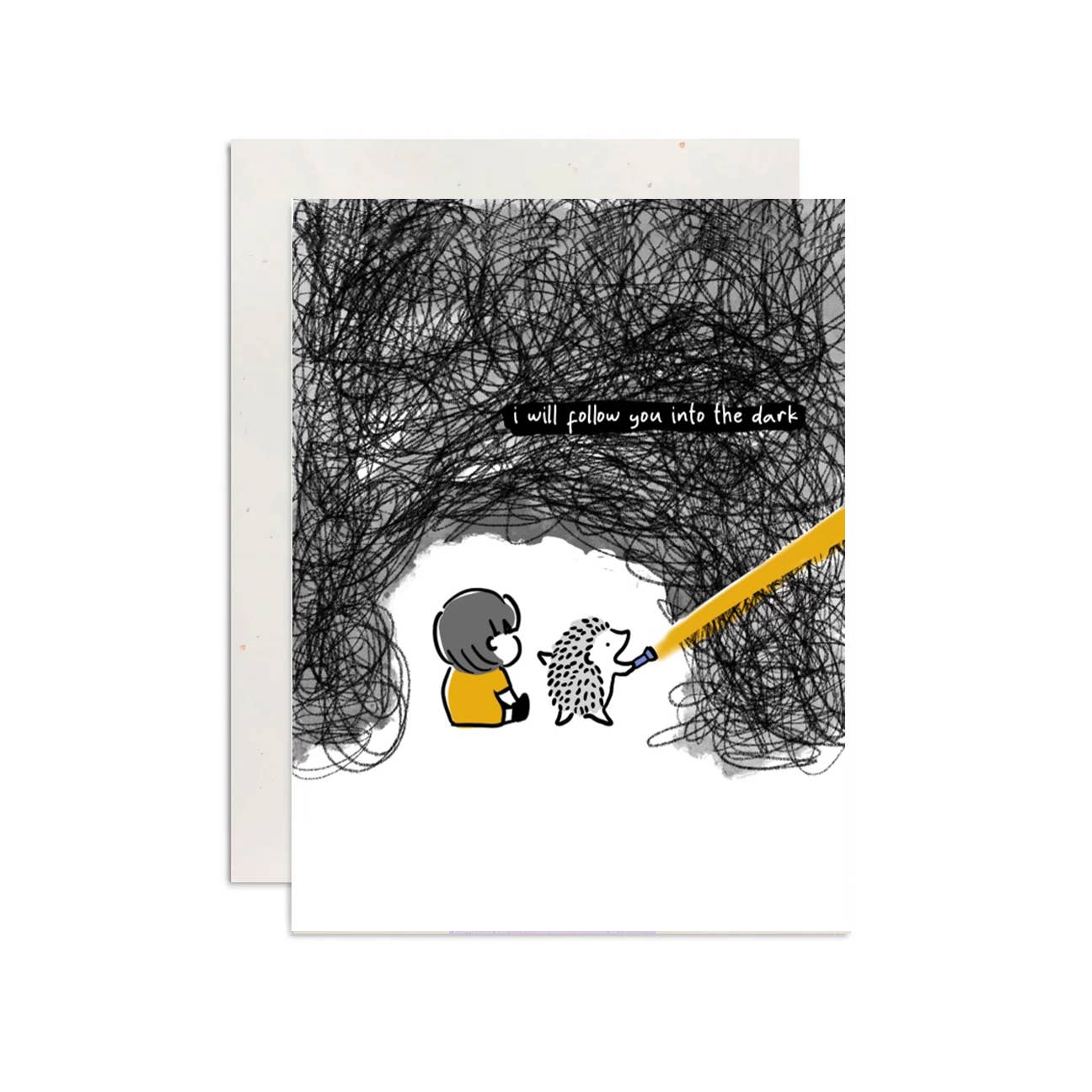 Biglietto di auguri piegato A2 (10,8 cm × 14 cm) con busta bianca inclusa. Interno vuoto. Testo sul fronte del biglietto: Voglio solo sedermi e non fare nulla con te.