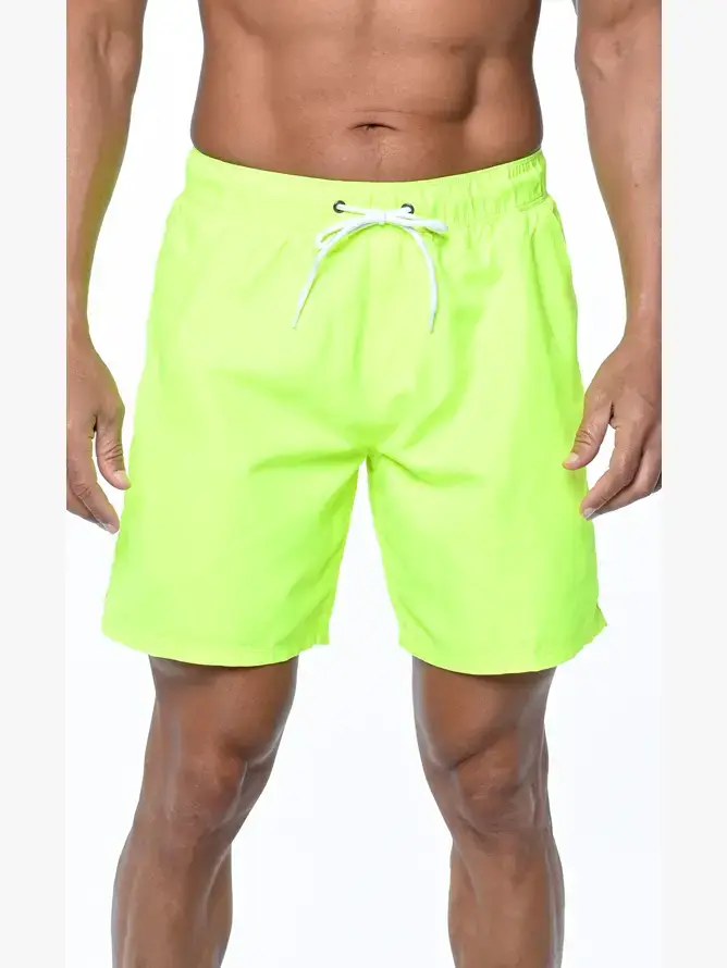 Costumi da bagno da uomo in colori solidi 100% poliestere Microfibra Vestibilità con cavallo da 18 cm Vita con banda elastica completa Fodera interna in rete aderente Tasche laterali e posteriori Importato Collezione estate 2024