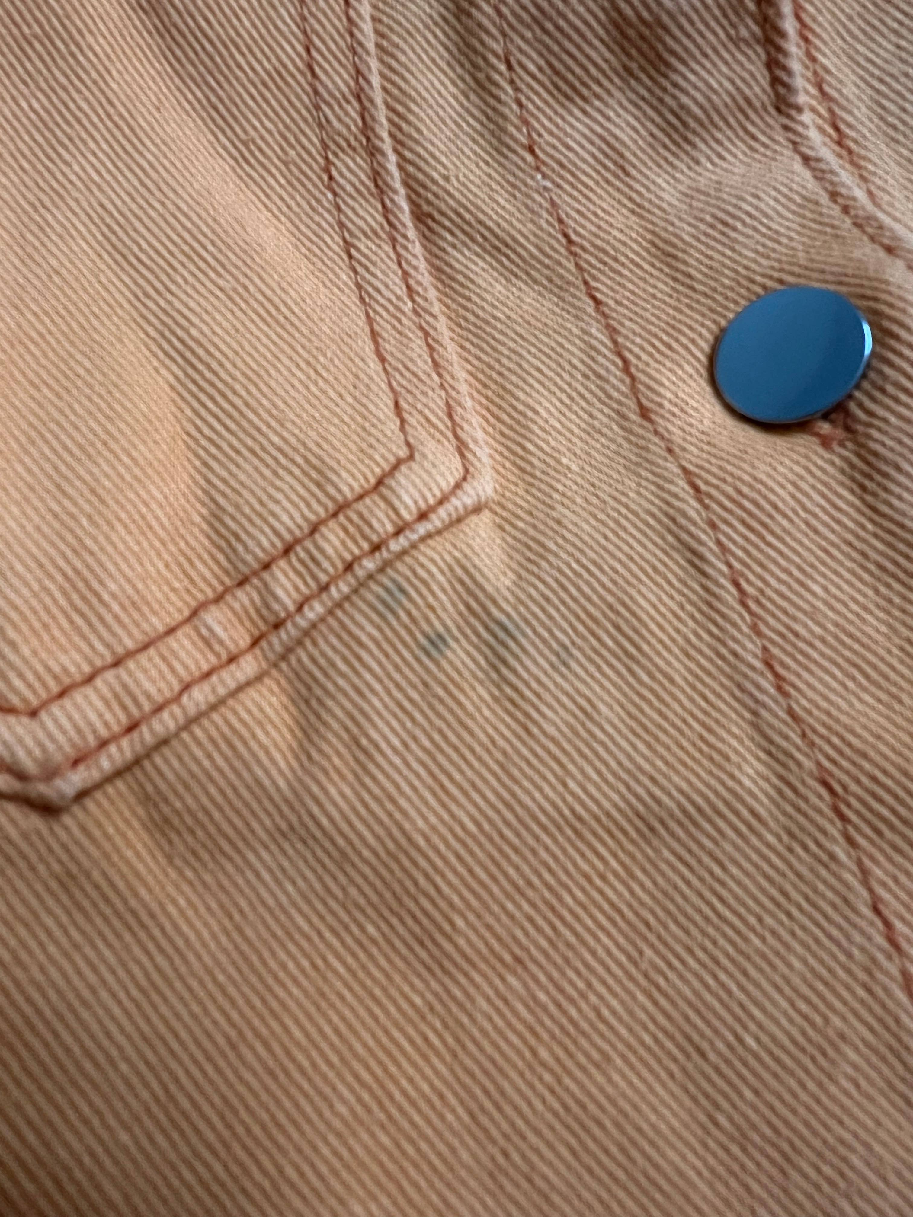 Giacca di jeans con bottoni color caramella e tasche, bordi grezzi JRM018
