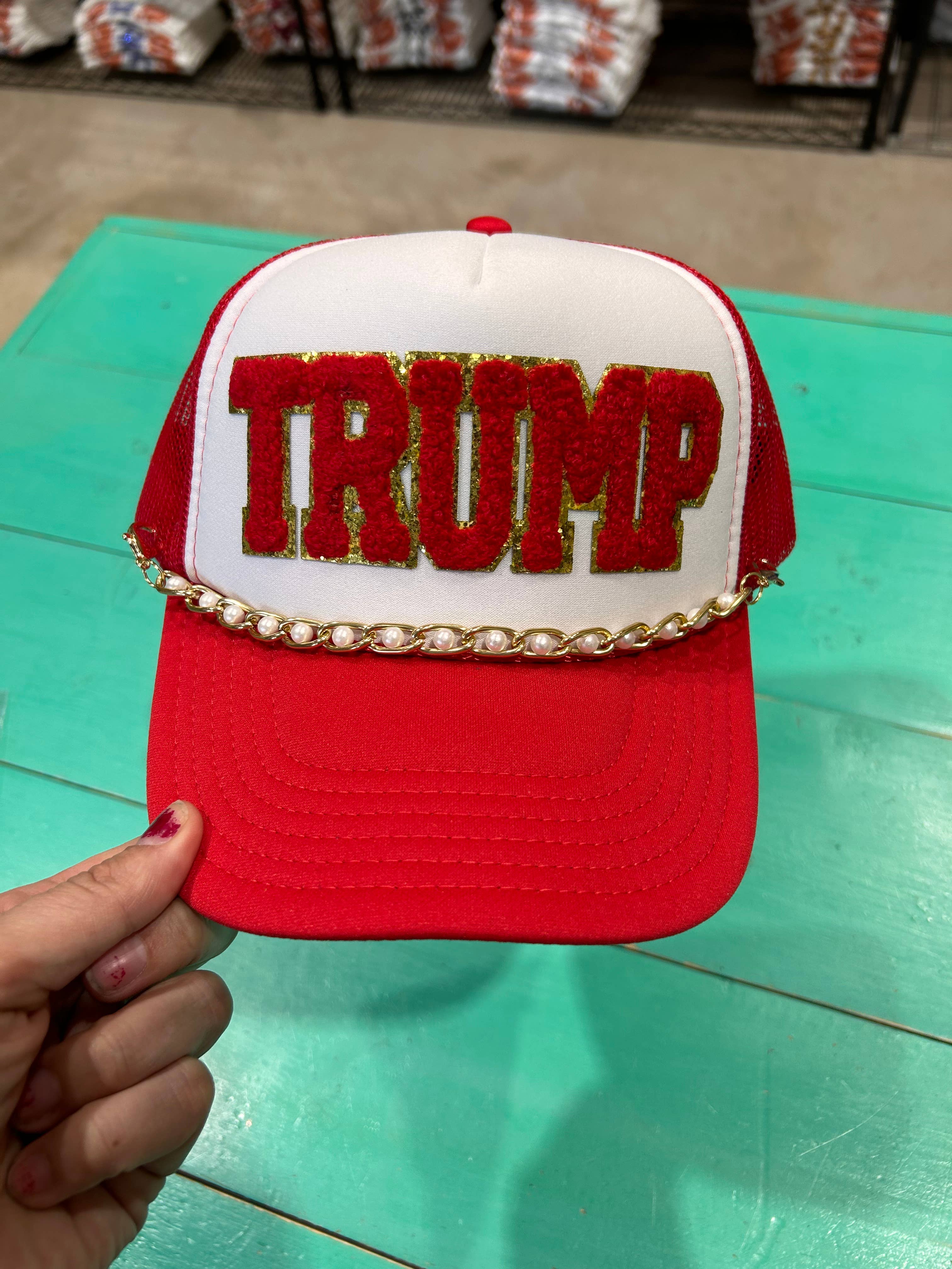 Red Trump Chenille Trucker | MAGA | Election Caps | Stati Uniti