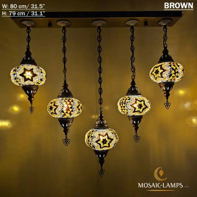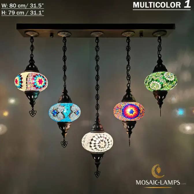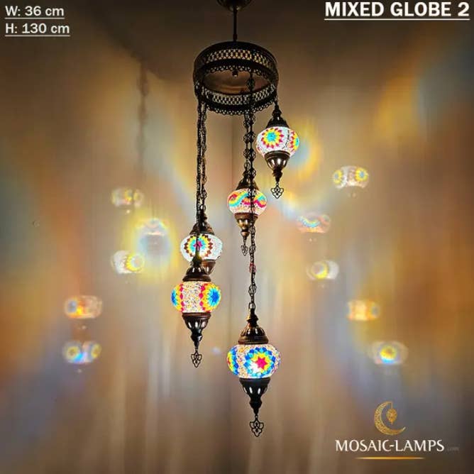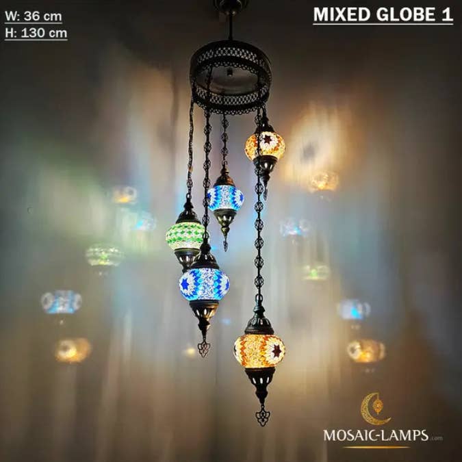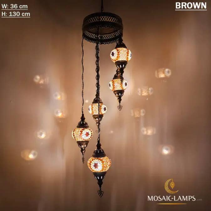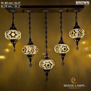 Lampade a sospensione a mosaico turco di medie dimensioni a 3 catene, lampade da soffitto marocchine fatte a mano, luci colorate per ristorante, camera da letto, soggiorno. 🎨 Specifiche tecniche: ✔️ Materiali: - Metallo: color bronzo - Vetro: vetro a mosaico fatto a mano ✔️ Globo: medio (NO 2) ✔️ Misurazione: Larghezza: 14 centimetri (5,5 pollici) Altezza: 50 centimetri (20 pollici) Profondità: 14 centimetri (5,5 pollici) Peso (gr): 900 gr ✔️ WATT: massimo 60 W ✔️ Tipo di lampadina: E12 o E14 ✔️ Portalampada E14 220V per Regno Unito, UE, AU, UNIVERSAL ✔️ Portalampada E12 110V per USA, CAN ✔️ Globi fatti a mano ✔️ Cablaggio: CE, certificato di qualità TÜV ✔️ Prodotto in Turchia ✔️ Lampadine non incluse Assemblaggio della lampada: - La nostra lampada ha un gancio per appenderla nella parte superiore.
