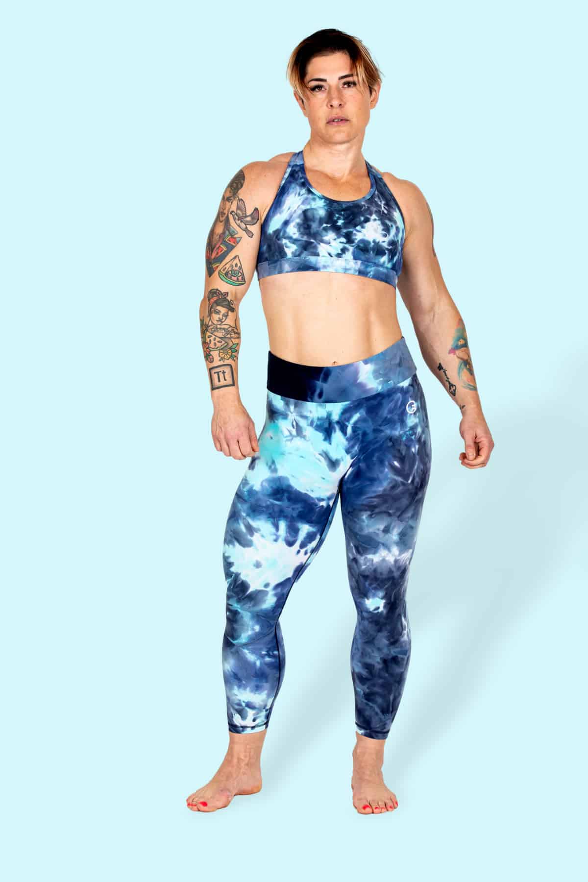 Rimani discreto ed elegante con il set di reggiseno e leggings sportivi Assassin Blue Camo SLIX! Il nuovo materiale SLIX, composto da 75% nylon e 25% spandex, è eccezionalmente liscio e liscio al tatto. L'atleta è Franchesca, che è alta 5'7′ (169 cm). Franchesca indossa Amanda dalla forma atletica per le magliette e Shape Angel per i leggings (Amanda Angel nelle nostre due taglie). Per assistenza sulle taglie, utilizza la nostra live chat in basso a destra della pagina o invia un'e-mail a support@grrrl.com