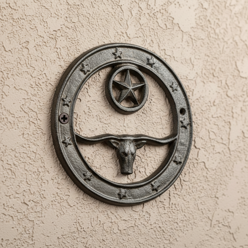 Crea un impatto sorprendente con il nostro Insegna da Parete in Metallo Tagliato al Laser Longhorn Welcome da 20 pollici. Questo pezzo dinamico presenta un teschio di longhorn dettagliato abbinato a un chiaro messaggio di benvenuto ed è arricchito da tre grandi stelle che aggiungono un tocco di fascino western. Realizzata in metallo di alta qualità , questa insegna da parete offre dettagli eccezionali e durata, rendendola perfetta per interni di ranch, cabine o casali. Il design tagliato al laser e il gancio di montaggio integrato garantiscono un'installazione rapida e senza problemi. Caratteristiche principali: * Design dettagliato del teschio di longhorn * Chiaro messaggio di benvenuto * Tre grandi stelle decorative * Metallo di alta qualità per una durata duratura * Gancio di montaggio integrato per un'installazione facile Porta lo stile western nella tua casa con questo pezzo audace. Viti di montaggio non incluse. Dimensioni: 20 in x 20 in