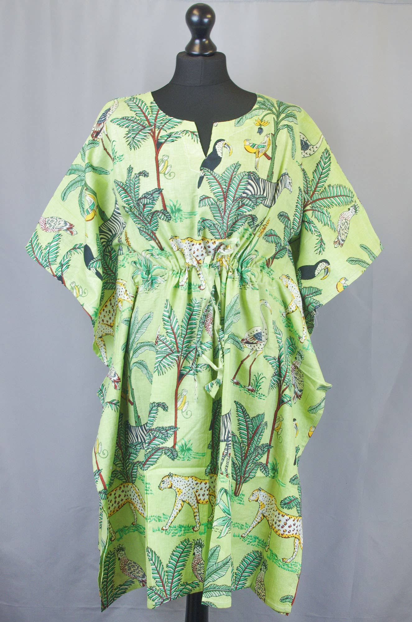 Questi abiti kimono in cotone fatti a mano sono disponibili in una varietà di colori e stili, in modo che si adattino a qualsiasi occasione. Specifiche tecniche: Tessuto: tessuto serigrafato a mano Taglie: taglia unica adatta alle taglie U.K da 8 a 16 Lunghezza: 50 pollici (127 centimetri) Dimensione del busto: 48 pollici Lunghezza delle maniche: 16" pollici Spalla: 8" pollici 2 tasche laterali anteriori, cintura e passanti e dettagli con un bordino in colore a contrasto. Cura: lavaggio delicato in lavatrice a freddo o a mano Il colore del prodotto può essere leggermente diverso dall'immagine a causa delle limitazioni della fotocamera e delle impostazioni individuali del monitor.