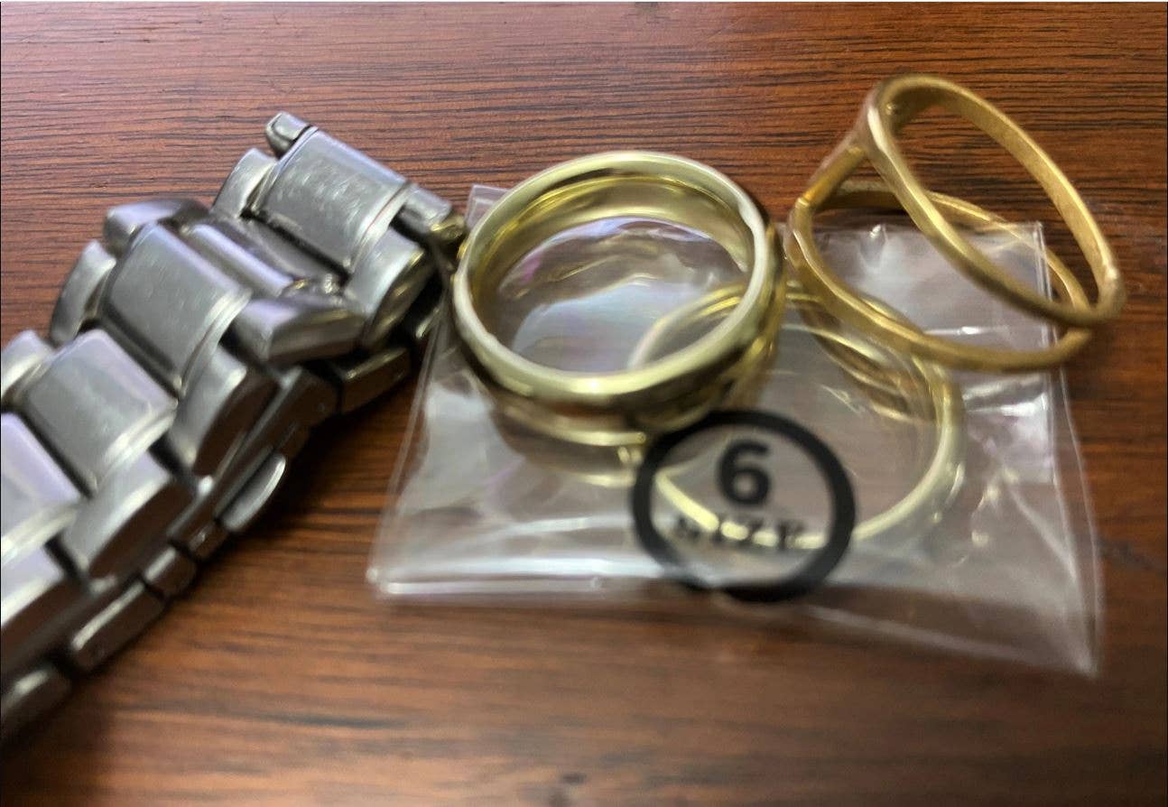 Il primo problema è che i 2 anelli color argento ordinati erano in realtà d'oro. La foto qui sotto è quella che ho fornito al venditore, che è stato così lento a rispondere che una risposta ha impiegato 8 giorni. Mi è stato detto che avrei ricevuto un modulo di reso, senza menzionare quando sarebbero stati inviati gli anelli corretti, quando ho chiesto mi è stato detto di ricordarglielo dopo aver restituito gli articoli sbagliati. Secondo problema, non portato all'attenzione del venditore poiché il servizio clienti non sembrava essere nella loro lista, seconda foto 2 braccialetti d'oro elencati come taglia adulto, invece no!
