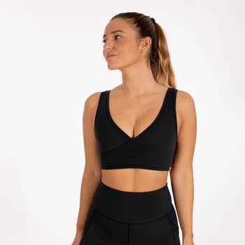 Top sportivo da donna con spalline larghe, scollo a V e imbottiture push-up. all'ingrosso