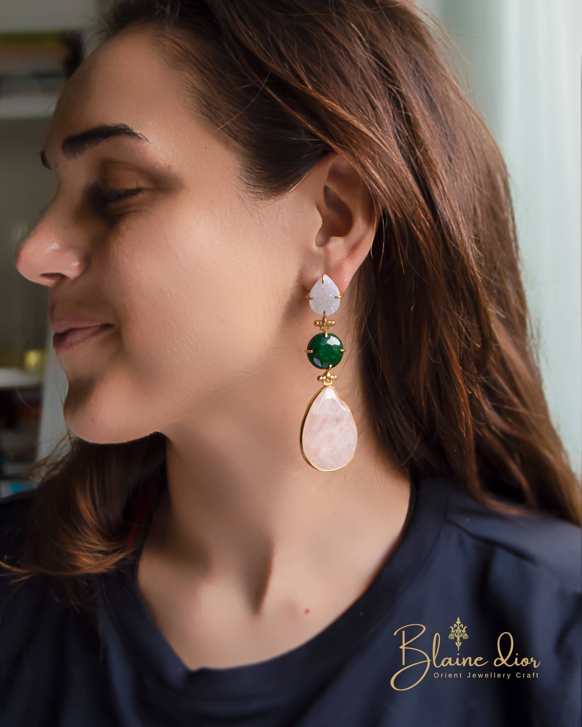 Realizzato su una base in lega di ottone in acciaio inossidabile placcato in oro 24K a triplo strato. Placcatura di alta qualità , anti-ossidazione, ipoallergenico, pietra naturale. Garanzia del produttore di tre anni. Proveniamo da una famiglia di gioiellieri a Delhi e Istanbul, e nel corso degli anni ho sviluppato una profonda passione per i gioielli. Non esitate a contattarci se avete domande o dubbi!