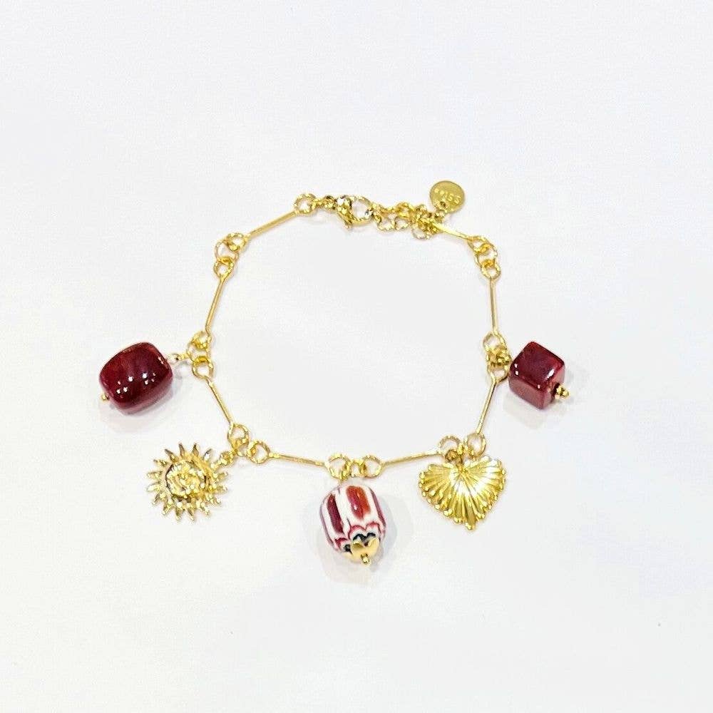 Ispirato al passaggio tra la luna crescente e la luna calante; il quarzo rosa è incastonato nell'ottone e abbinato a ciondoli scolpiti a mano sulla nostra catena con chiusura a mano per creare questo bracciale. Larghezza charm 1/2 pollici Lunghezza bracciale 7 «- 7 5/8" regolabile Questo pezzo è realizzato a mano su ordinazione. Ogni pezzo può variare leggermente a causa dell'unicità delle pietre. Tutto il metallo è privo di nichel. Materiale: ottone, metallo, semiprezioso, pietra, pietra preziosa, riciclato.
