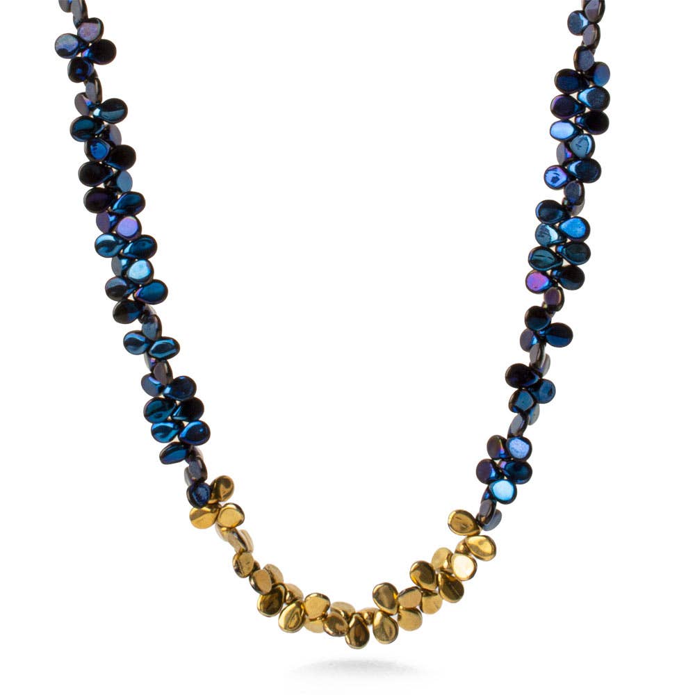 Collana a forma di sirena in vetro blu e oro