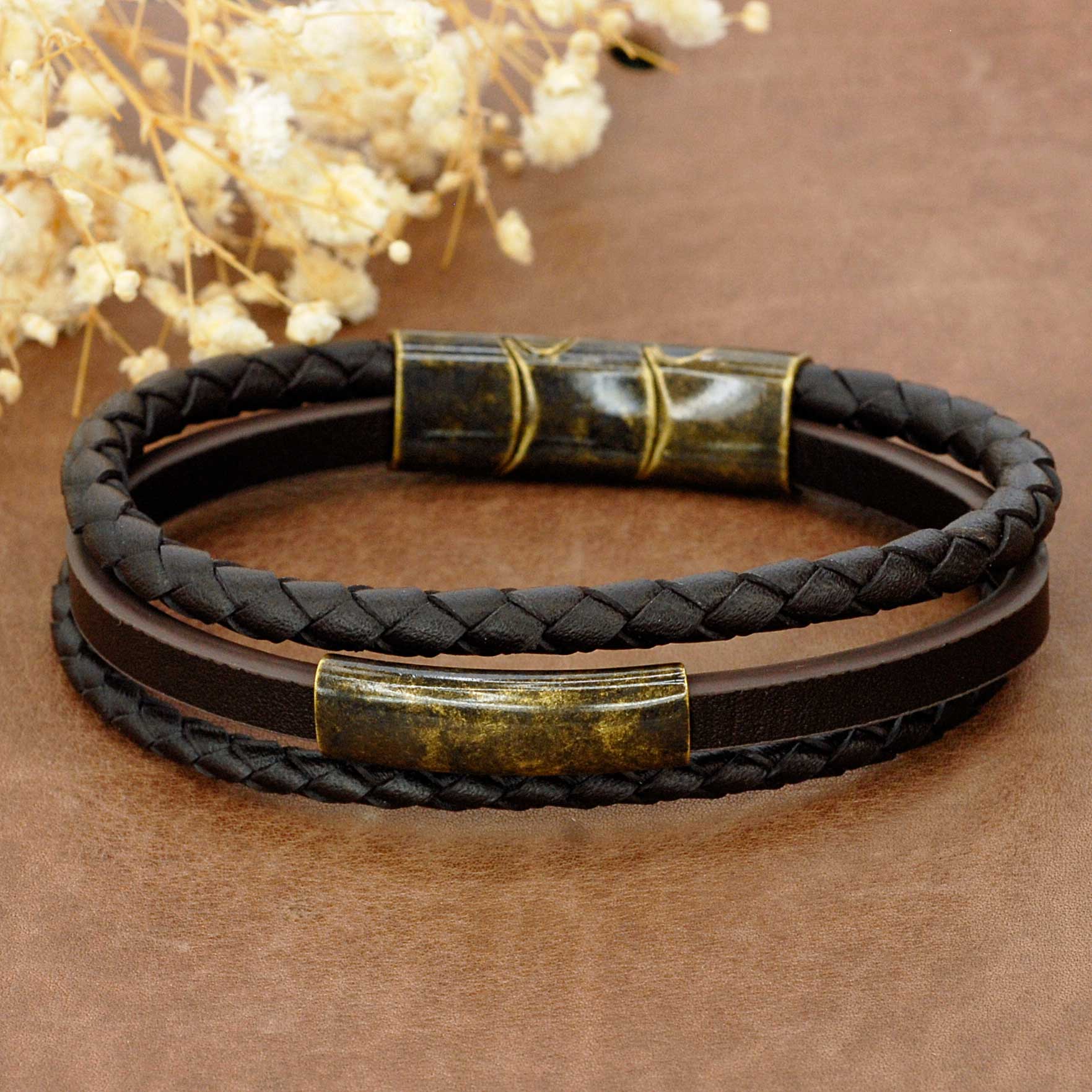 Bracciale da uomo in pelle e acciaio inox