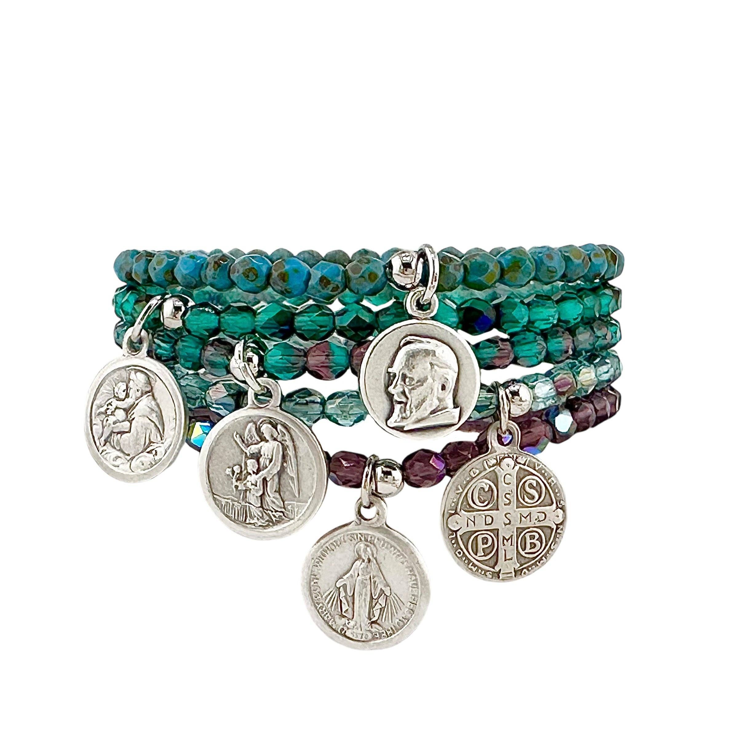 Braccialetto elastico con perline da 6 mm con medaglia di Sant'Anna e misura di 6,85 pollici. Include una carta di preghiera di Sant'Anna. Un regalo religioso significativo per madri, nonne e donne in cerca di conforto e intercessione.