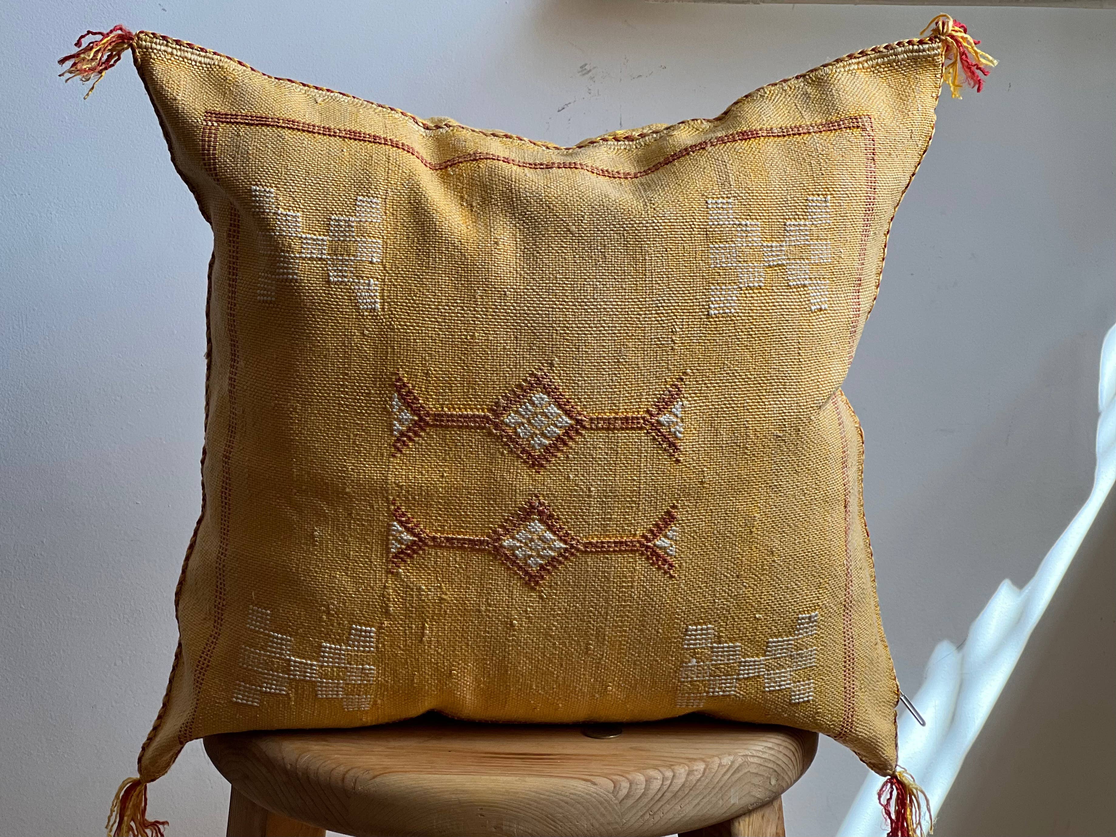 Cuscino da pavimento per pouf a quadretti in lana senape berbera lavorato a mano all'ingrosso