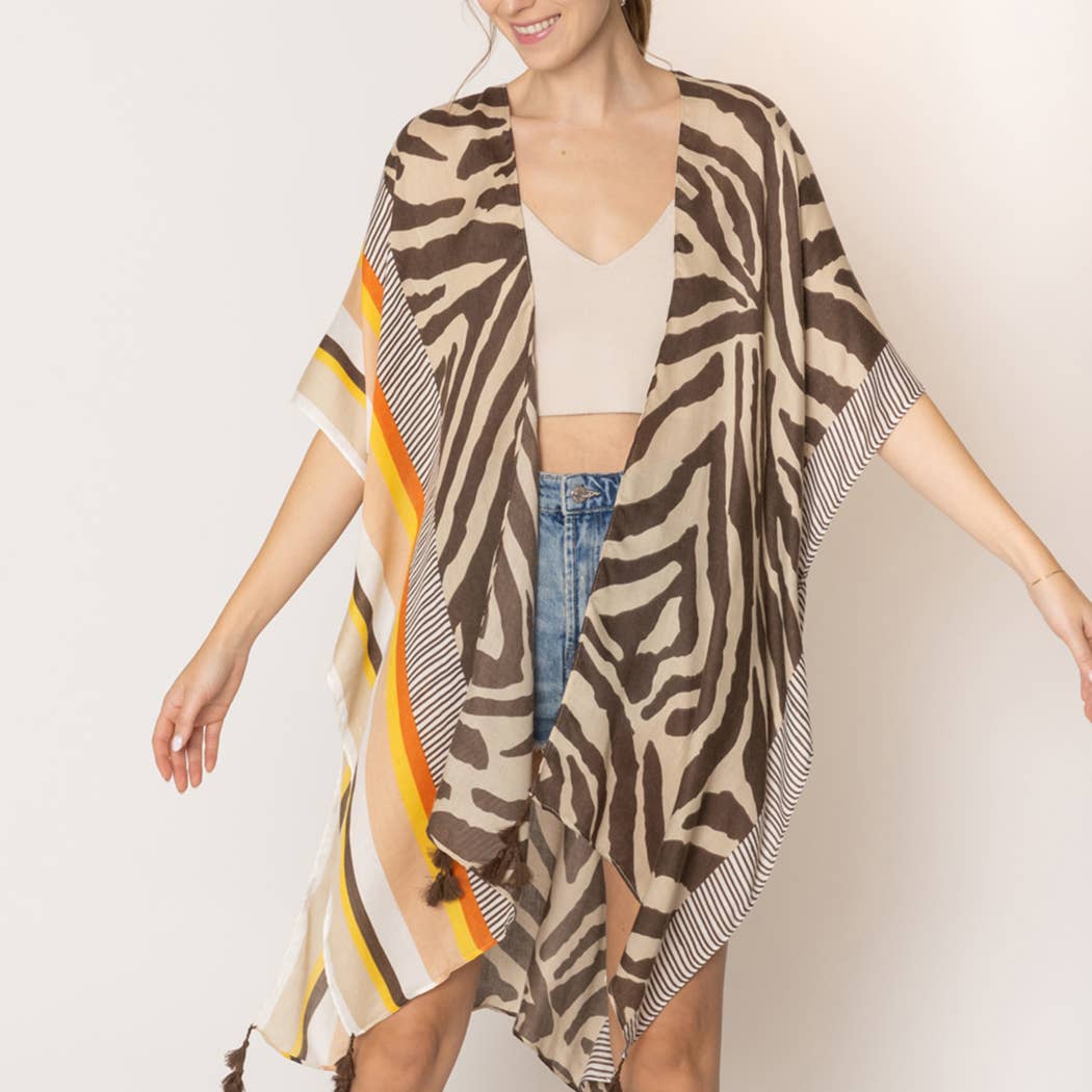 Kimono con nappe con stampa zebrata