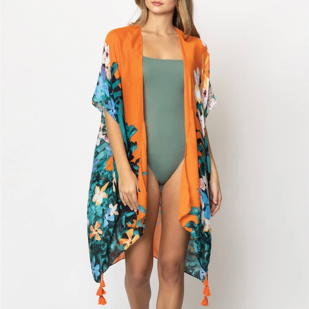 Copricostume kimono con nappine con stampa floreale tropicale all'ingrosso