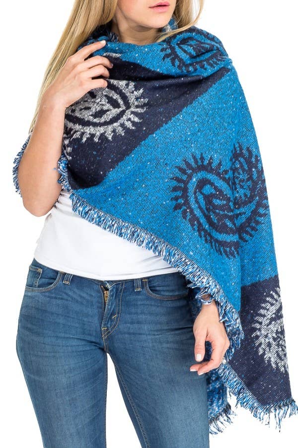 Poncho a mantella occidentale con motivi geometrici aztechi