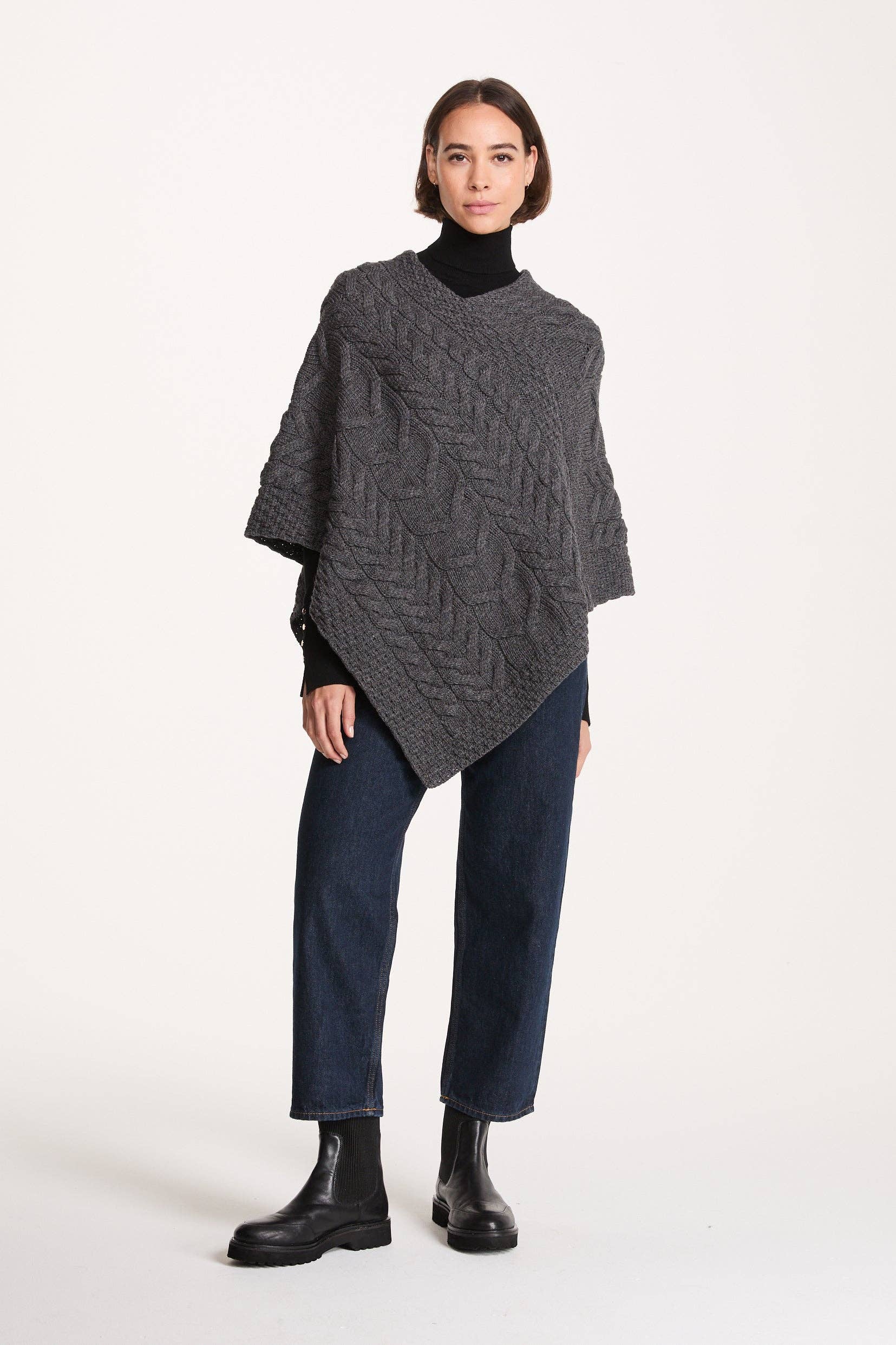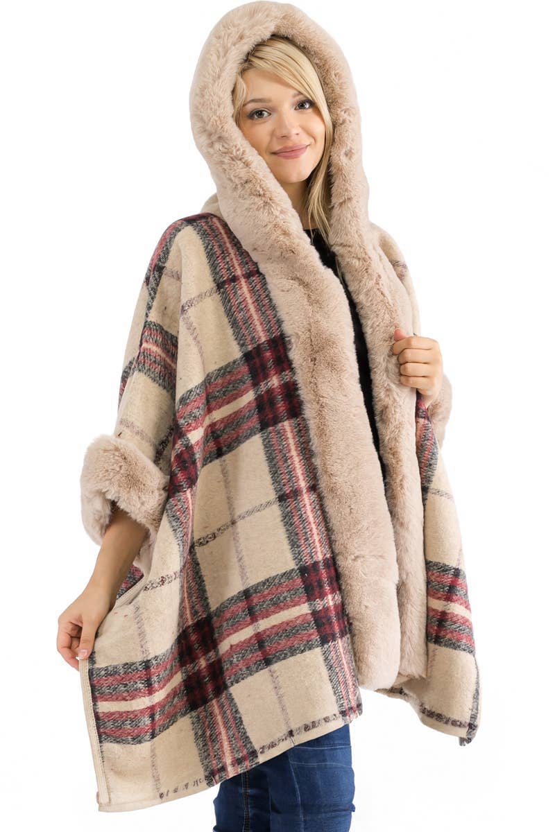 Poncho a collo alto con motivo scozzese e effetto invecchiato all'ingrosso