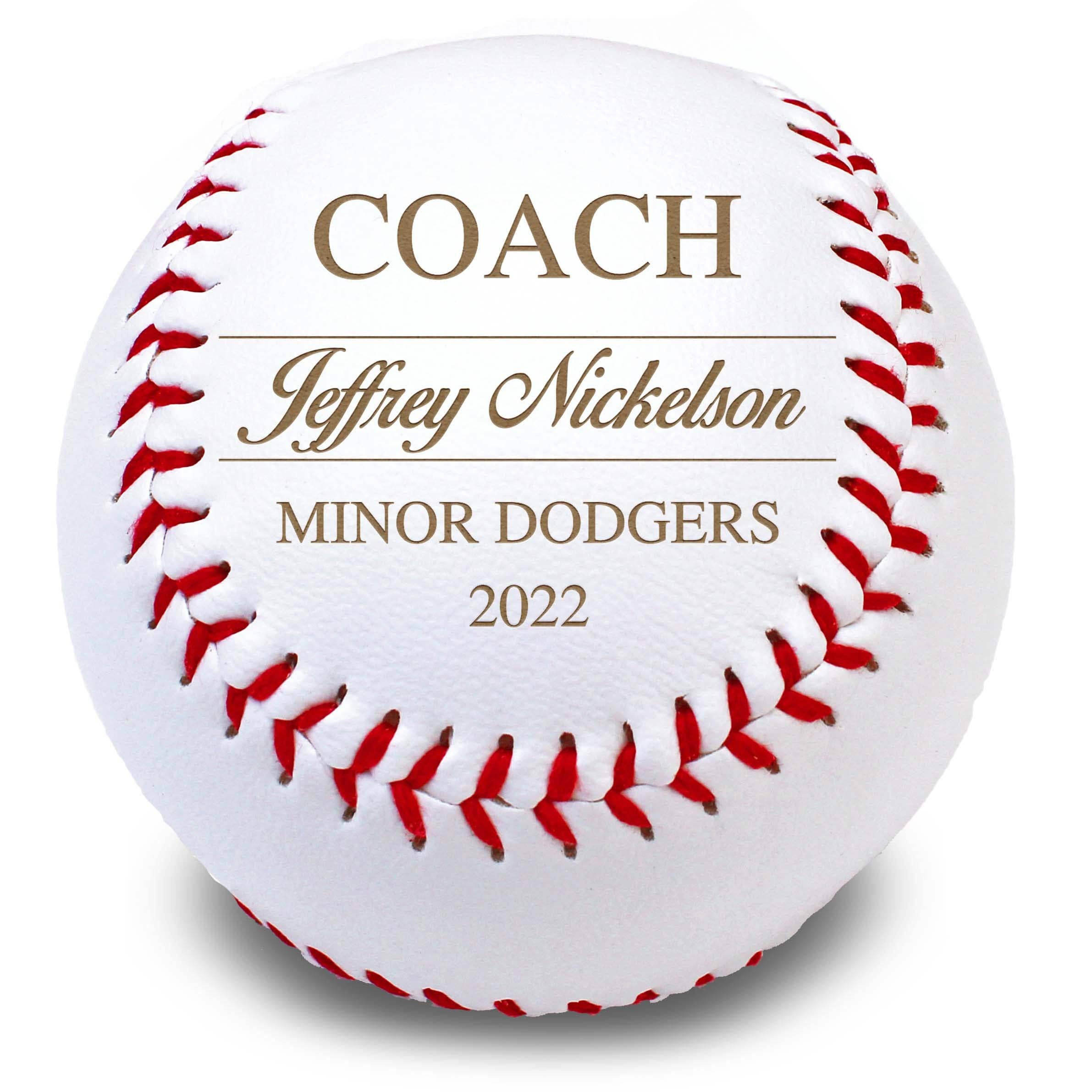 Festeggia la fine della stagione di baseball con le nostre palle da baseball personalizzate. Queste palline da baseball personalizzate sono il regalo perfetto per allenatori, giocatori della Little League, papà , squadre o trofei. Le nostre palle da baseball di dimensioni standard sono rivestite in pelle sintetica. Ogni pallone è inciso al laser professionalmente con le informazioni personalizzate del giocatore e della squadra.