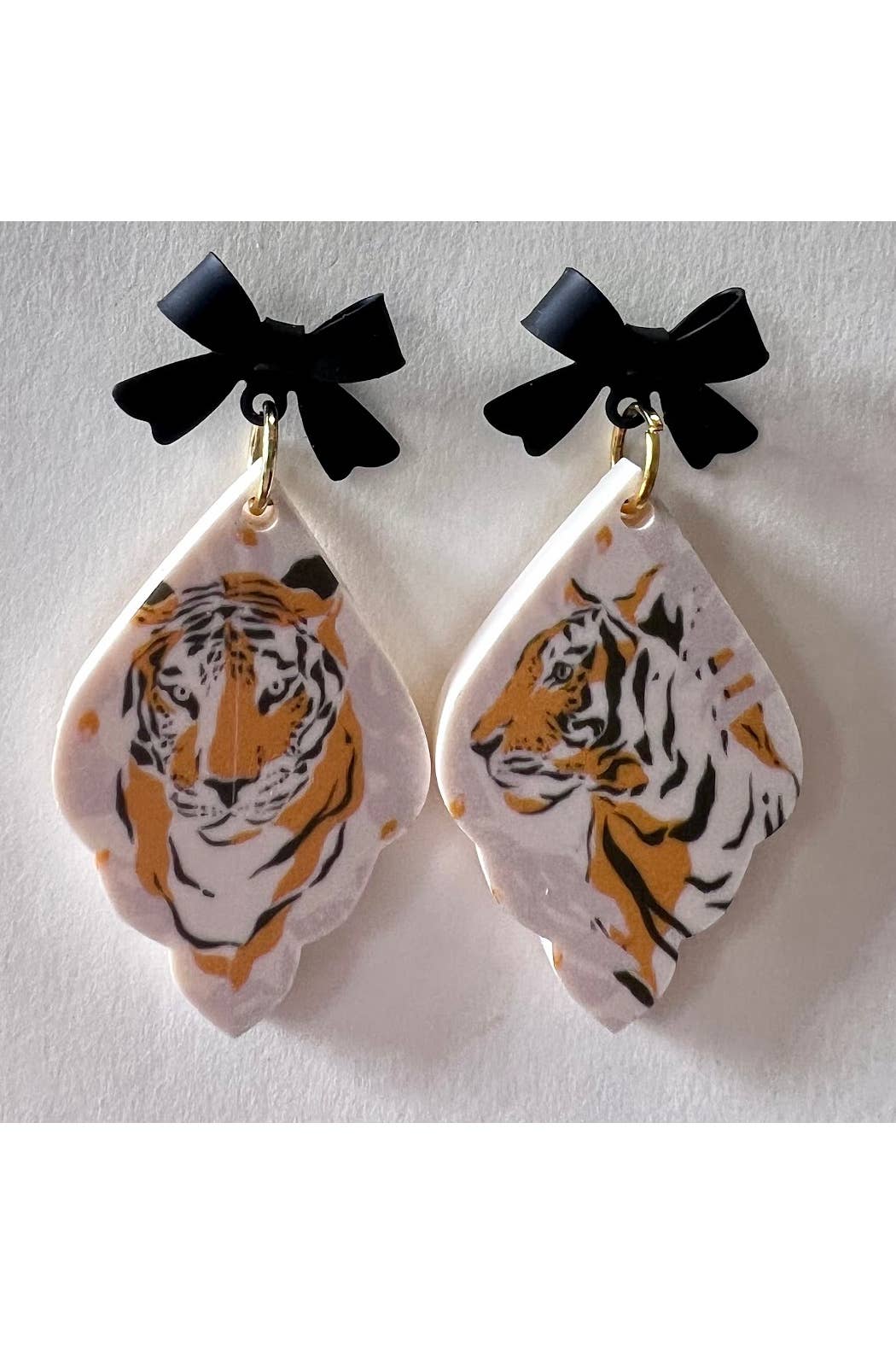Orecchini a bottone con tigre, orecchini in acrilico, Gameday, borchie