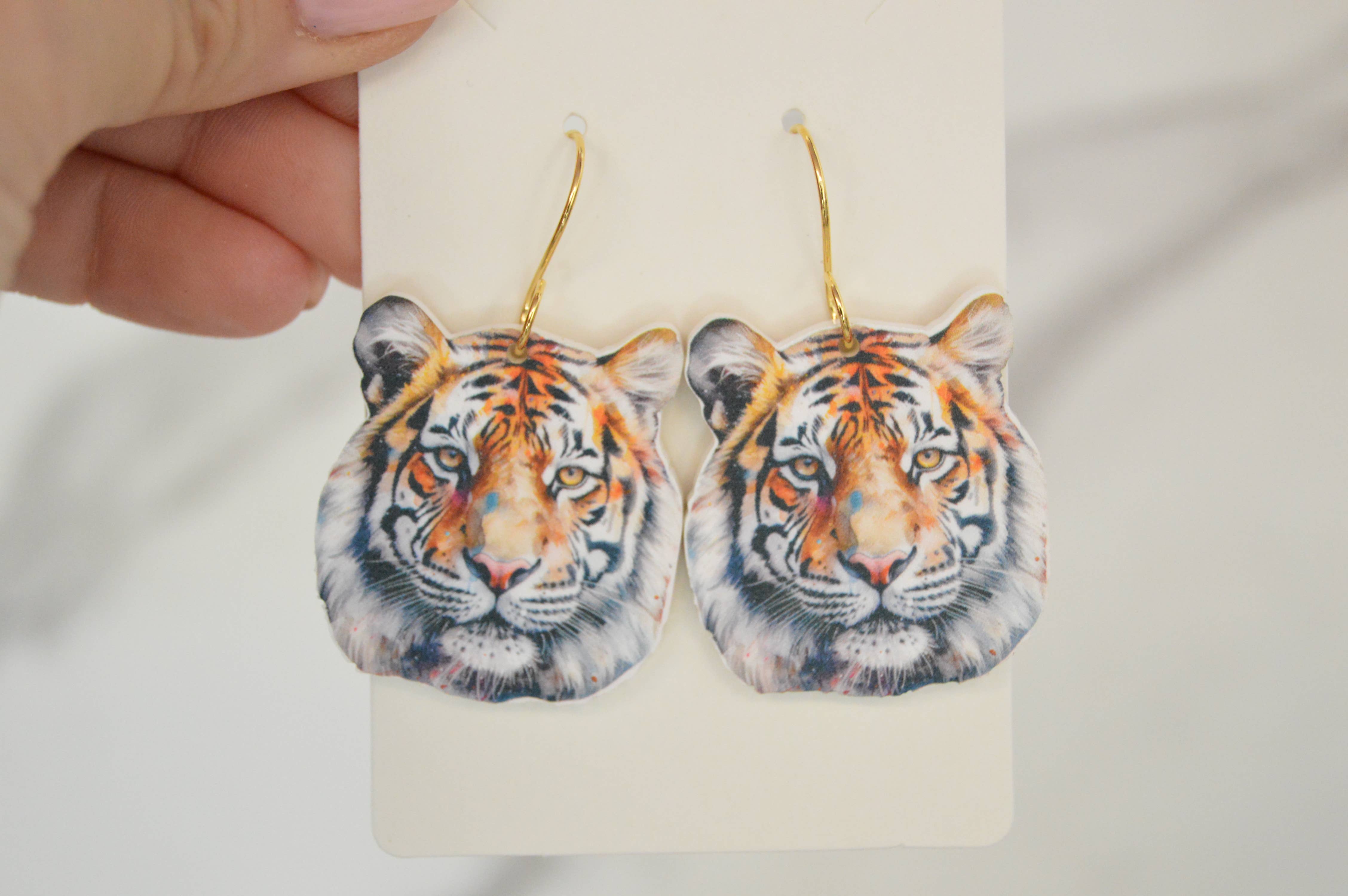 Orecchini a bottone con tigre, orecchini in acrilico, Gameday, borchie all'ingrosso