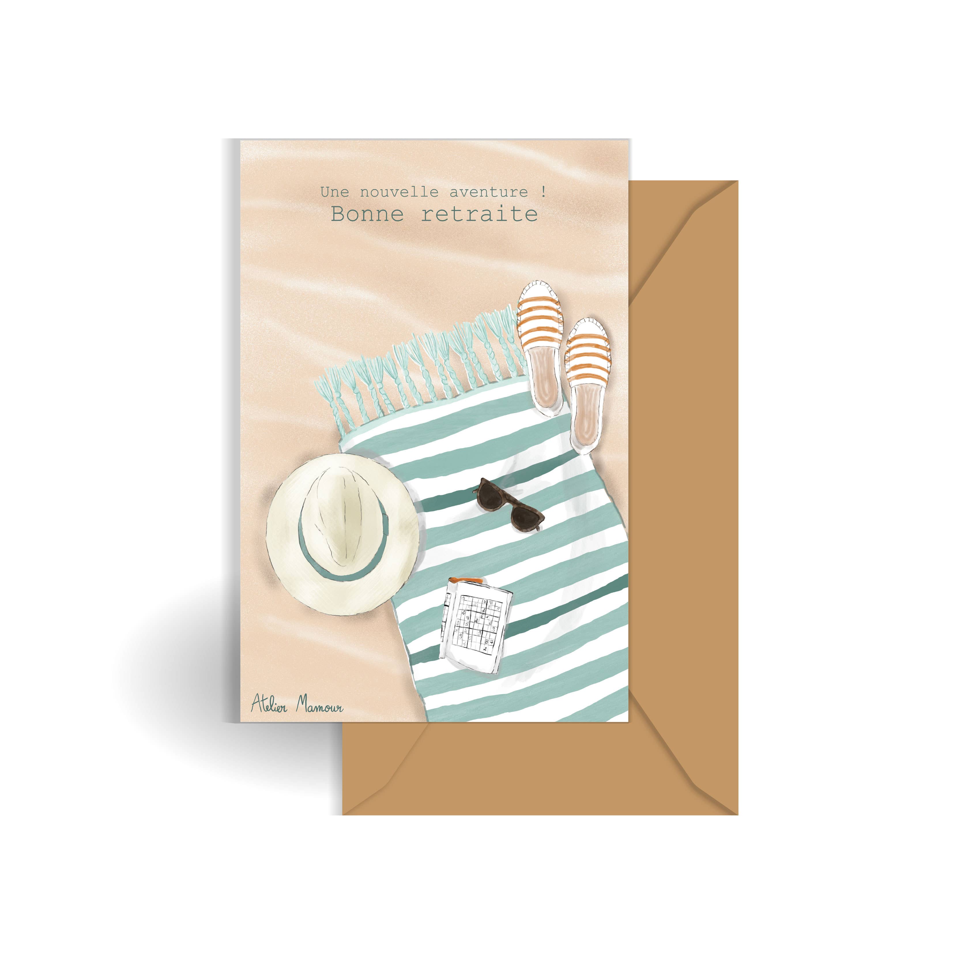 -Augura ogni bene al nuovo pensionato con questo saluto tipografico a tre colori -Stampato con inchiostri neri, grigi e rossi su copertina grigio chiaro -Vuoto -Abbinato a una busta bianca stampata -Misure 3,5" x 4,875" (4 bar) -Confezionato in una custodia di plastica trasparente