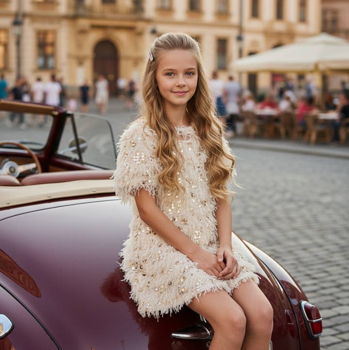 Il nostro abito all'americana a strati con cravatta è una deliziosa aggiunta al guardaroba di tuo figlio. Disegnato da Hannah Banana, questo abito riflette magnificamente la nostra dedizione alla creazione di capi unici e di alta qualità. Il design a strati aggiunge un tocco giocoso, mentre lo scollo all'americana e la cravatta in vita assicurano una vestibilità comoda. Ideale per ogni occasione speciale, questo abito mostra la nostra abilità nell'incorporare materiali sofisticati in look giovanili e alla moda. Goditi quest'ultima aggiunta alla nostra gamma, progettata per far sentire il tuo bambino tanto elegante quanto unico.