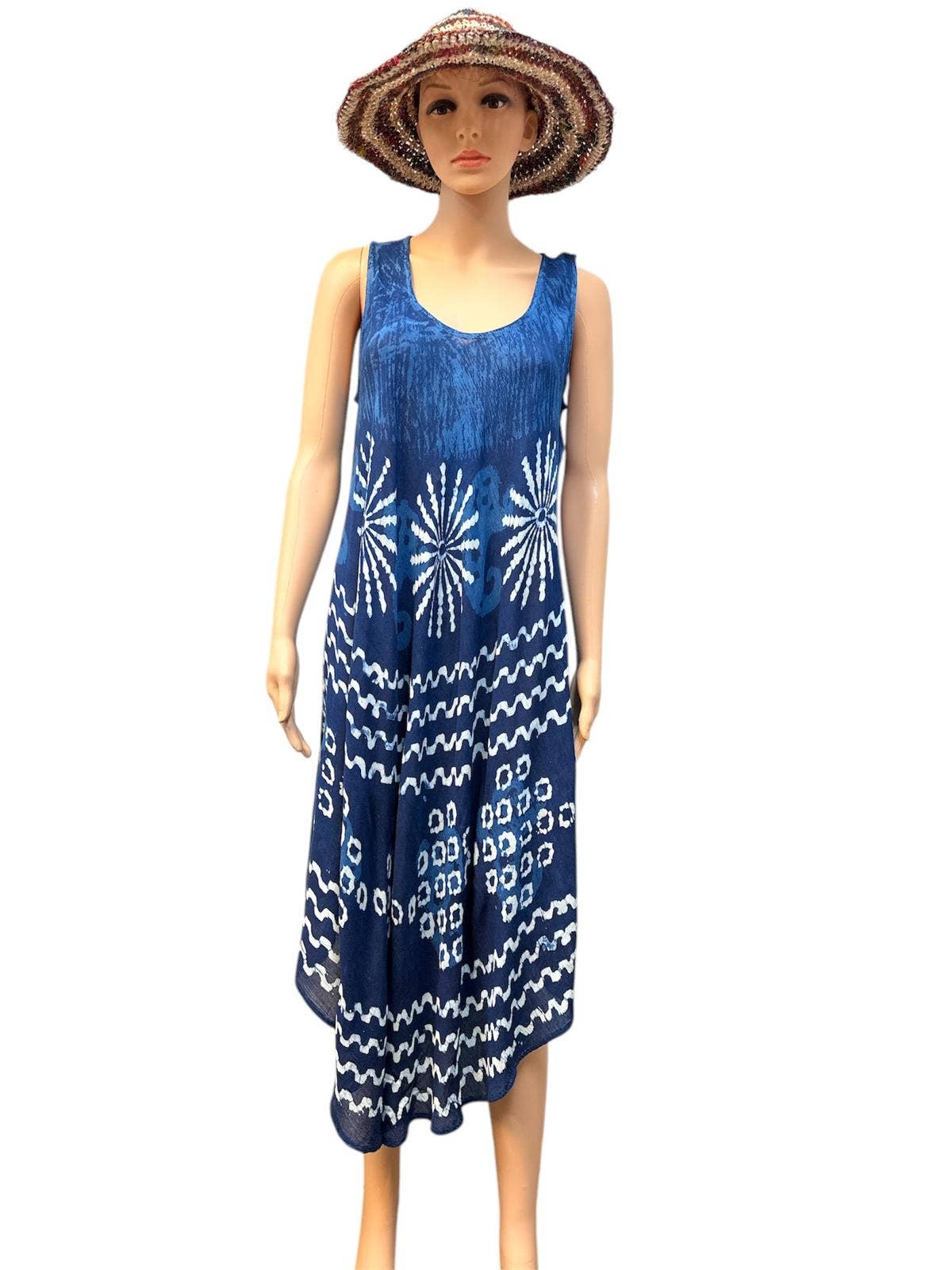 Vestito Ombrello in Rayon Tie Dye Blu Oceano Prodotto in Thailandia TAGLIA UNICA