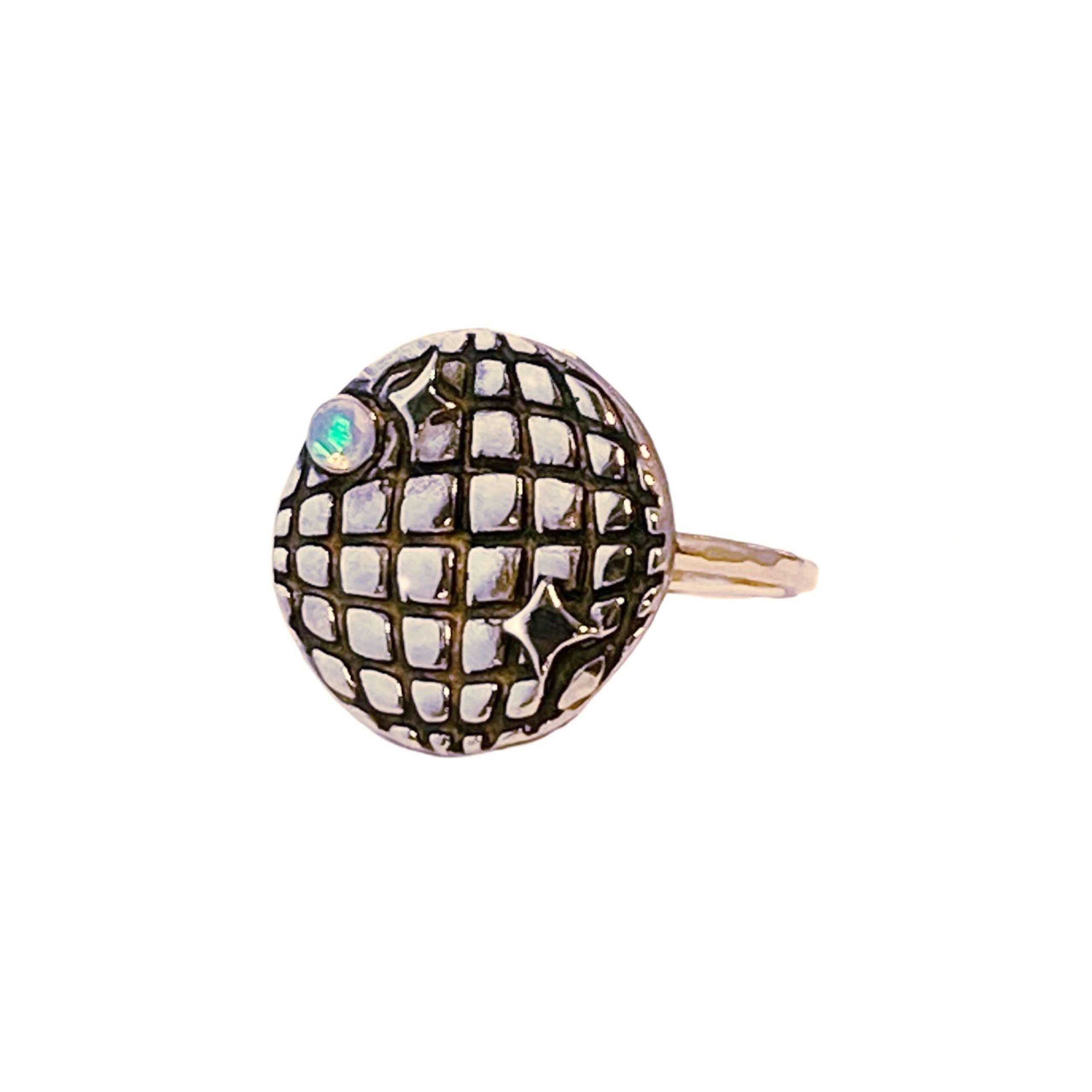 Realizzato a mano a Chicago da Therese Kuempel - Disponibile in ottone massiccio, bronzo bianco o argento sterling. - Il bronzo bianco è quasi identico all'argento Sterling, il che lo rende un'alternativa economica alla sterlina, pur rimanendo di colore argento. È un metallo liscio, durevole e non tossico che è altamente resistente all'ossidazione. - Tutto il nostro metallo è privo di nichel. - Cinturino ad anello dorato (fascia ad anello in argento per opzioni in metallo bianco).