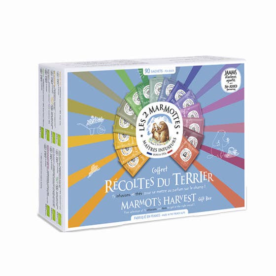 Cofanetto L'Heure des Thés - 75 bustine - Assortimento di 9 tè e rooibos biologici, ideale per regali e degustazioni - Les 2 Marmottes. Assortimento di 9 tè e rooibos biologici. Per una pausa tè meritata! Confezione 100% vegetale. Fruttati o speziati, le nostre 9 ricette sono state create dai nostri maestri miscelatori nei nostri laboratori in Alta Savoia. Bouquet che profumano di natura per iniziare (o prolungare) la giornata nel modo giusto. 75 bustine (9 ricette). In dubbio tra menta verde e menta piperita? Prendile entrambe! Un tè biologico Menth’Olé molto rinfrescante, da gustare caldo o freddo! Tè al fiore di gelsomino. Con un carattere tonico e mielato, il nostro Tè sveglia è ideale per il mattino. Tè fruttato. Questo Chai con cannella e cardamomo ti incanterà. Rooibos al ribes nero. Programma dimagrante e buon umore non sono incompatibili… Allora Tè snellente? Tè verde Yunnan. Tè al limone: tè nero e verde, limone.
