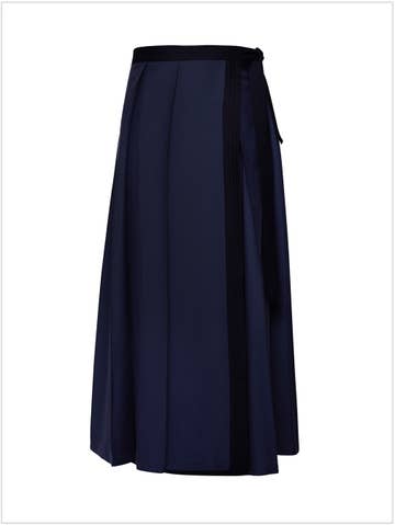 Gonna lunga in lino al ginocchio realizzata in tessuto obliquo per una migliore forma. Ampia fascia in vita per un maggiore comfort. A forma di «A». Si adatta bene al lavoro d'ufficio se combinato con una camicia e/o una giacca, preferibilmente biancheria.