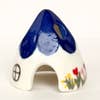 Bruciatore di Incenso a Cono a Forma di Casa di Topo in Ceramica Blu con Fiori