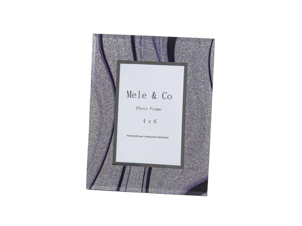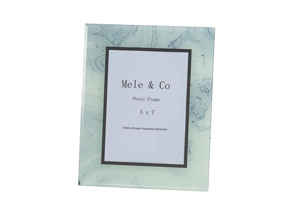 Cornice per foto in vetro effetto marmo con venature dorate. Può essere appoggiata su una superficie o appesa a parete, da posizionare sia in orizzontale che in verticale. La cornice contiene una singola foto da 10 x 15 cm (4 x 6 pollici). Disponibili anche custodie a gioiello coordinate.