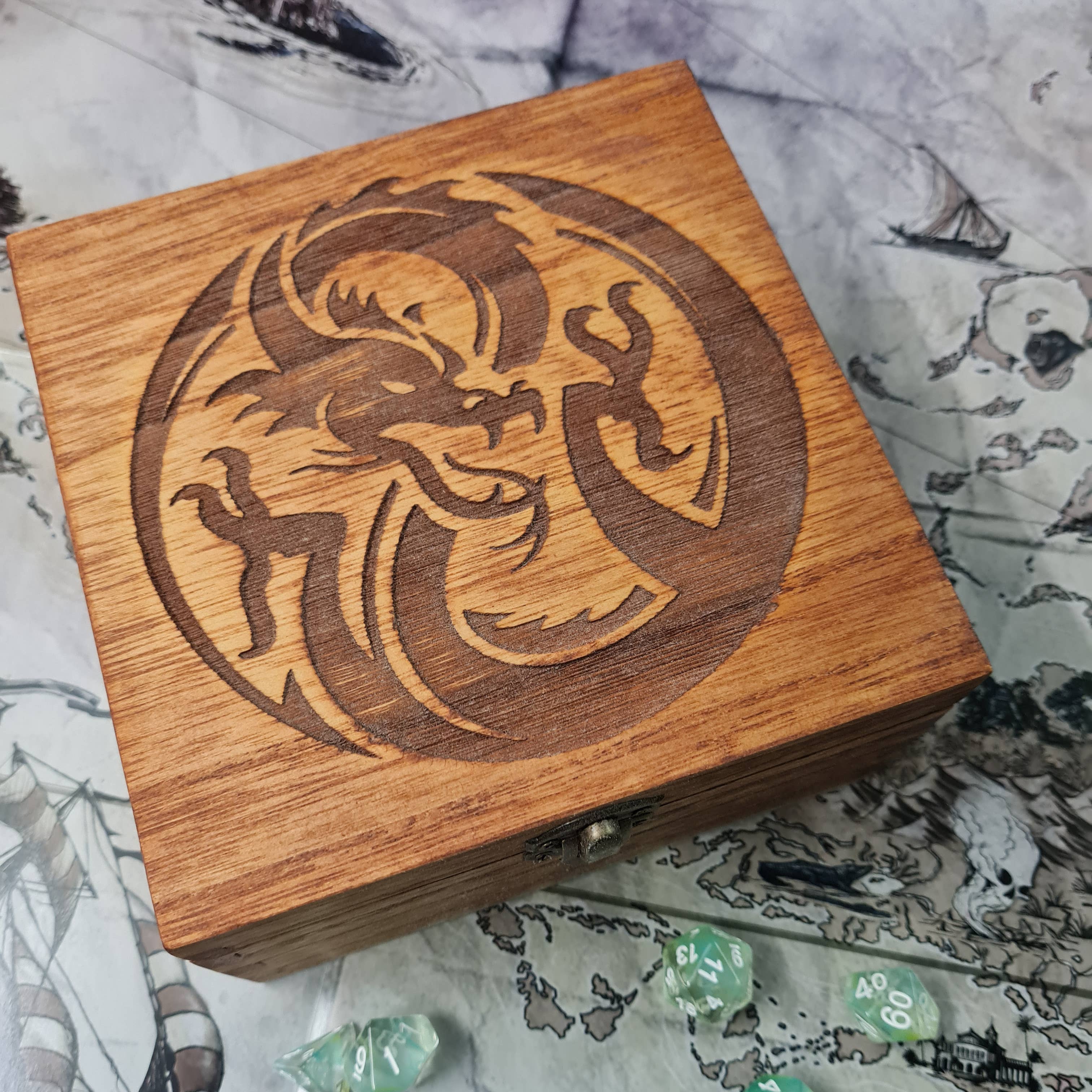 Questa grande scatola viene fornita pre-infeltrita, Questo è un ottimo modo per un giocatore di conservare i propri set di dadi e note di gioco! o semplicemente come scatola di immagazzinaggio speciale per i ricordi importanti * Dimensioni: 12 cm x 12 cm x 6 cm * Si chiude con chiavistello in metallo * Rivestito con uno strato di olio danese * 8 finiture di colore * Pre-infeltrito
