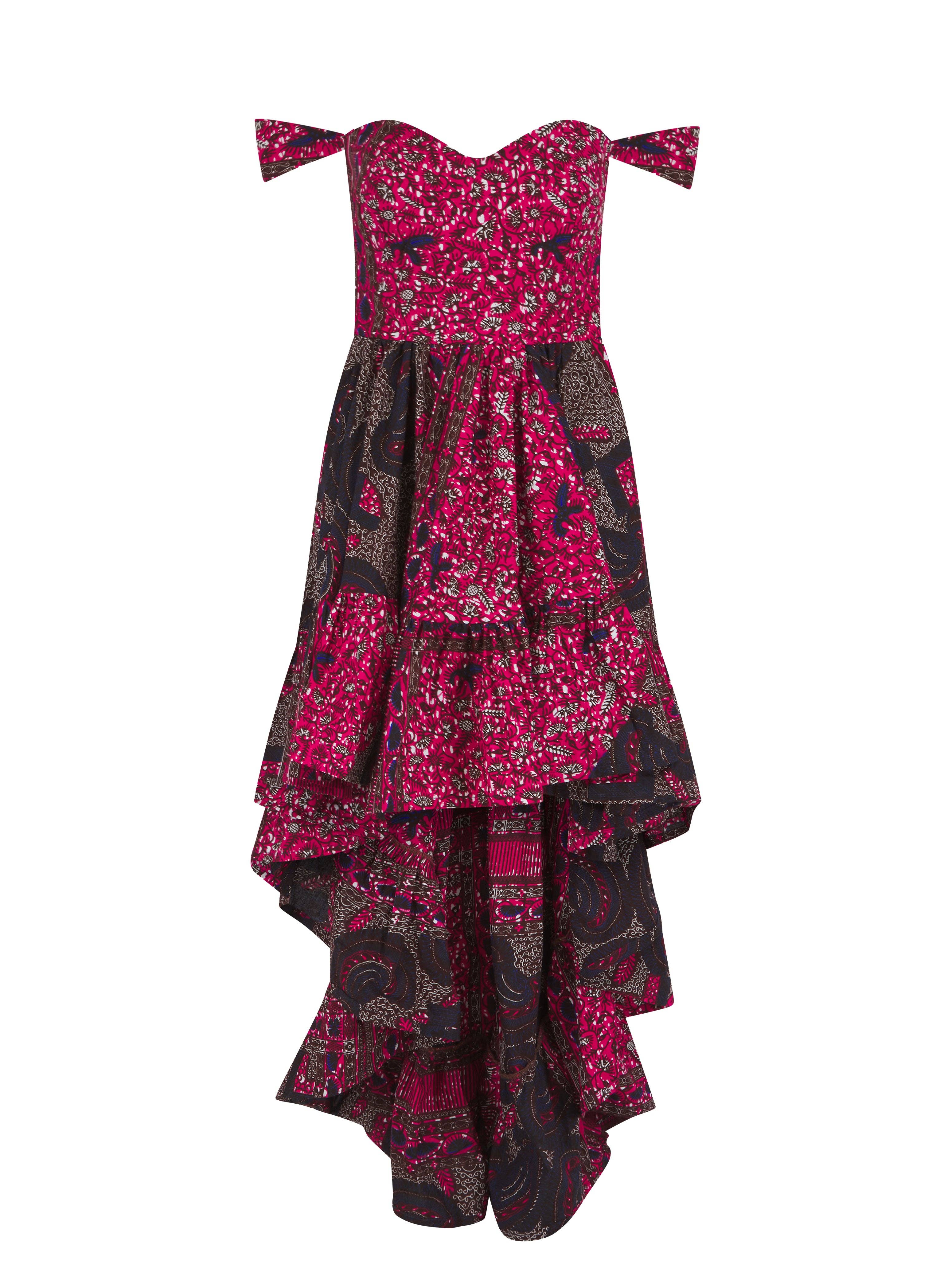 Maxi abito Akua con maniche a balze e stampa africana all'ingrosso