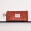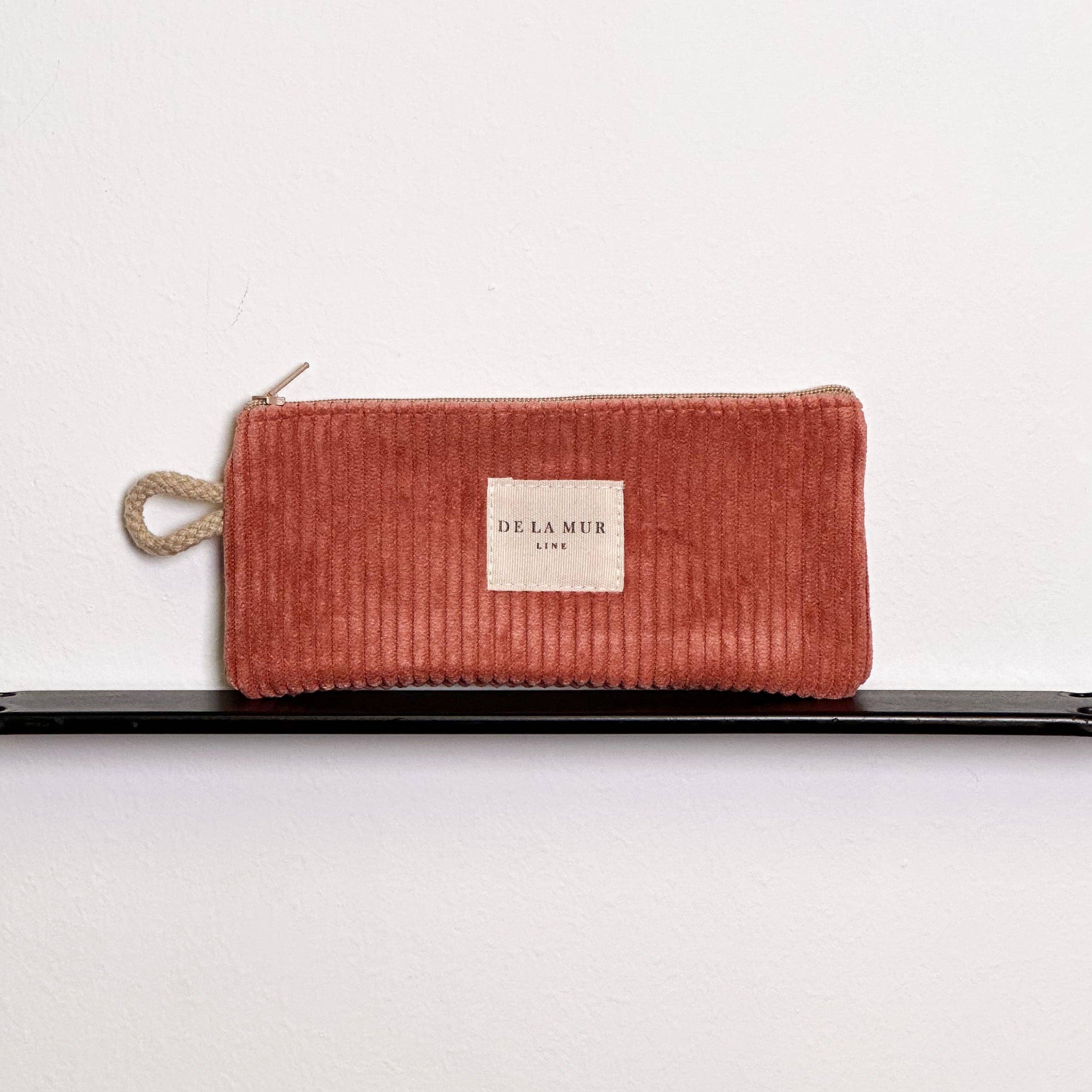 Custodia per occhiali con cerniera nella parte superiore e piccolo manico in cordoncino beige sul lato. In tessuto spesso di velluto a coste color corallo. Foderato con tessuto spesso di colore grigio all'interno. Per una corretta manutenzione si consiglia di lavarlo a mano in acqua fredda e di non utilizzare l'asciugatrice. Larghezza x Altezza 17 x 8 cm Realizzato con tessuti nazionali.