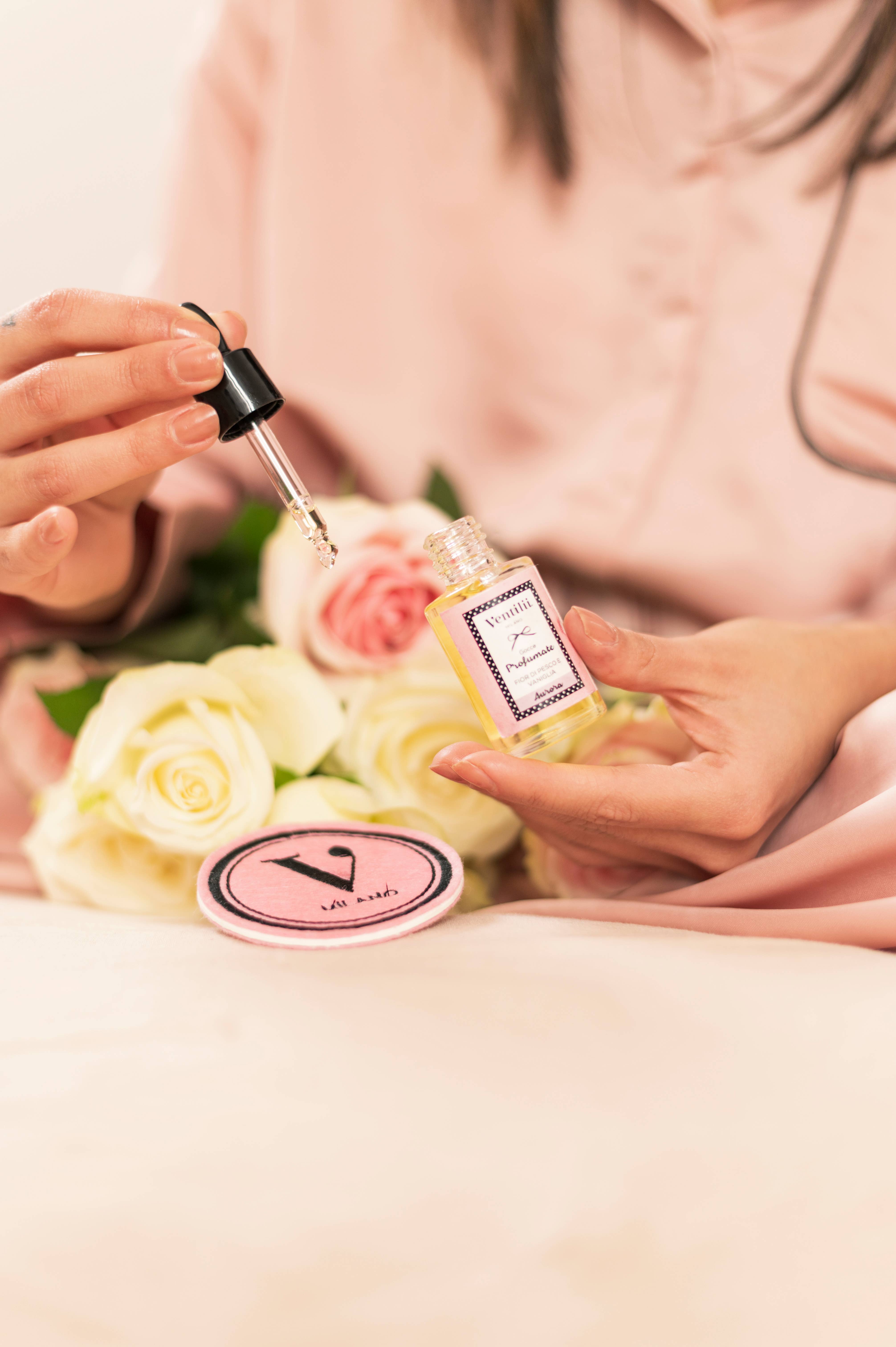 Le gocce profumate Ventilii Milano sono la soluzione ideale per profumare panni in asciugatrice, armadi, borsoni, cassetti e piccoli spazi chiusi. Basterà lasciar cadere qualche goccia di prodotto su un piccolo pezzo di stoffa oppure sui nostri dischetti di cellulosa per inondare qualsiasi luogo di un fresco sentore! Fragranza Conchiglie: Una brezza trasparente d'acquamarina e sale, racchiusa tra due valve di arancia e mela verde, ricade in note di orchidea orientale e magnolia. Sul bagnasciuga giace una conchiglia robusta di legni pregiati e sandalo, bagnata di schiuma marina e sole.
