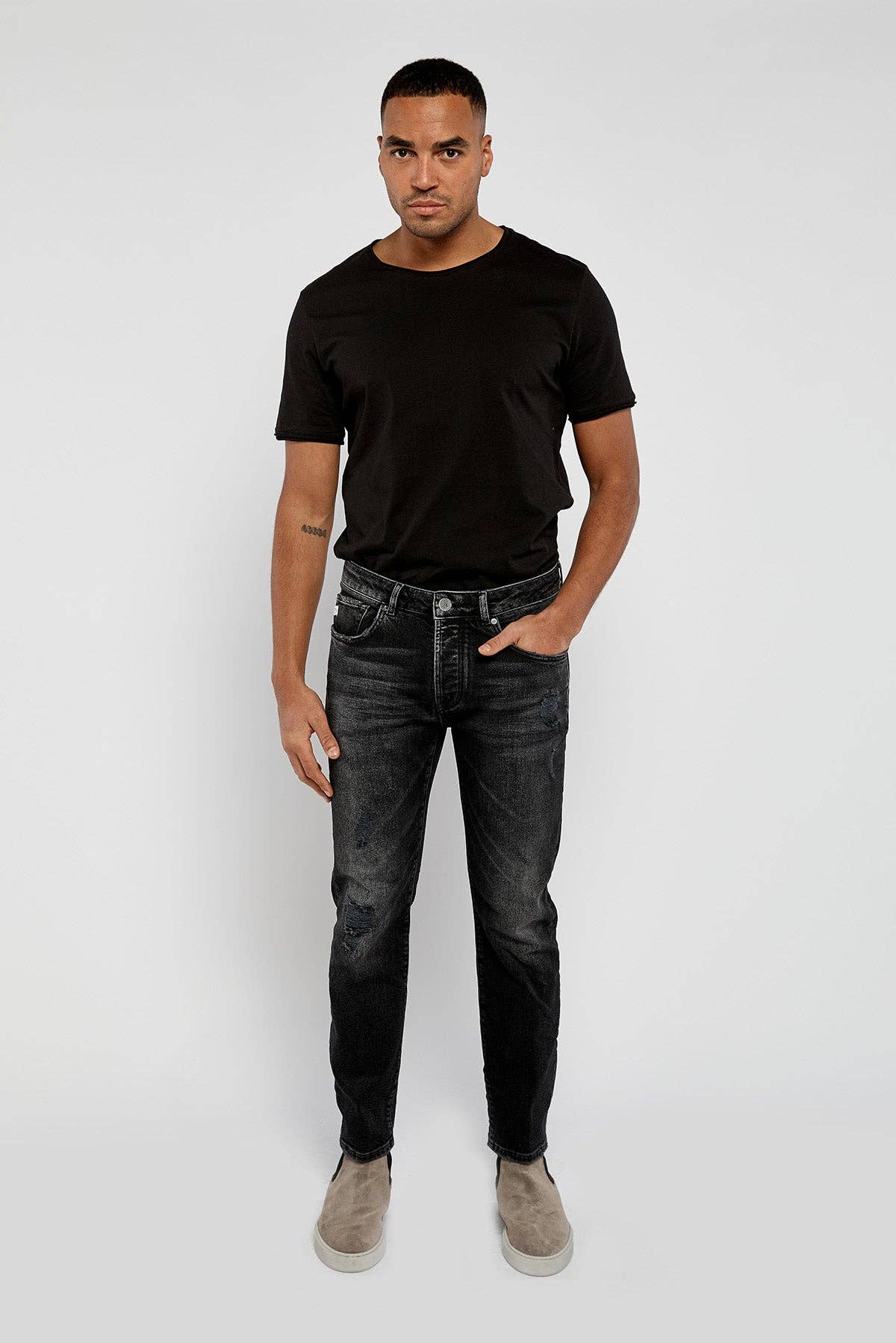 Ti presentiamo la nostra creazione audace e all'avanguardia Jeans in denim da uomo con strappi patchwork con pietre cristalline. Progettati per coloro che osano distinguersi e abbracciare la fusione di stile audace e stile artistico, questi jeans ridefiniscono le nozioni convenzionali della moda denim. Realizzati in denim di alta qualità, questi jeans presentano una robustezza distintiva con un tocco di caos artistico. I dettagli patchwork accuratamente curati presentano una serie di trame, lavaggi e colori del tessuto, creando un arazzo accattivante che racconta una storia di individualità ed espressione personale. L'abile disposizione di toppe e strappi presenta un'armoniosa giustapposizione tra ribellione e raffinatezza. Infusi con uno spirito ribelle, gli strappi strategici e l'angoscia aggiungono carattere e carattere ai jeans.