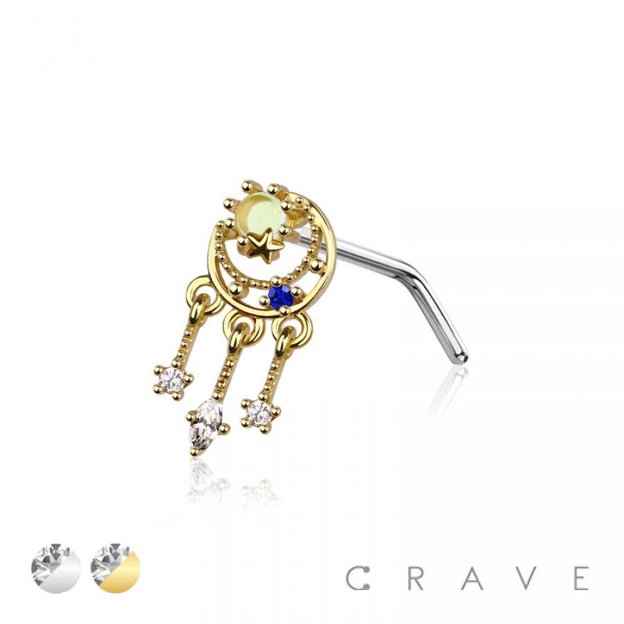 PIERCING DA NASO A FORMA DI L IN ACCIAIO CHIRURGICO 316L CON ZIRCONIA CUBICA A DOPPIA PUNTA IN VENDITA ALL'INGROSSO