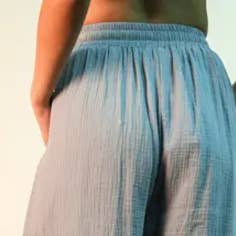 **TAGLIA FORTE Cerca NP70803X** - Pantaloni larghi in garza tinta unita - Orlo regolabile - Vita elastica con coulisse - Tasche laterali (Altezza modella: 5'8", indossa una taglia Small, rapporto taglie 2-2-2, NOVITÀ)