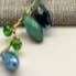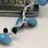 Perlina lunga in cotone cerato grigio argento e perle color acqua
