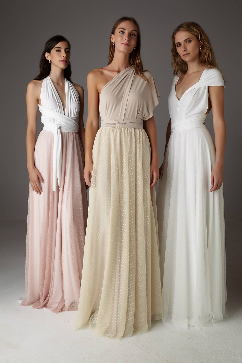 Long Infinity Dress champagne può essere indossato in diversi modi per soddisfare tutti i gusti e le forme del corpo: basta legare l'abito nel modo più adatto a te. Questo articolo è disponibile in due taglie a seconda della taglia del vestito: La taglia unica si adatta alle taglie americane dalla 4 alla 14 (taglia europea 34-44). Valore 125€ La taglia Plus si adatta alle taglie statunitensi dalla 16 alla 20 (taglia europea 46-52). Consigliamo la taglia Plus Size per torace dalla taglia 100 ESP in poi (100 FR, 38 UK, 4 IT, 38 US, 16 AUS). Valore 158€