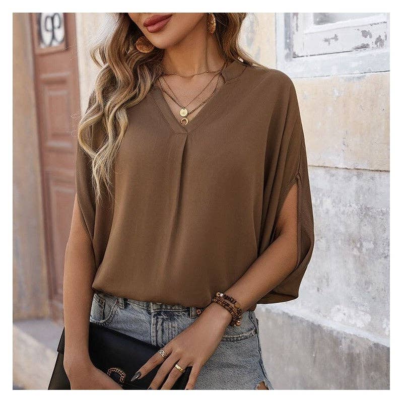 Camicette e camicie con scollo a V con maniche a pipistrello e bottoni larghi con stampa floreale