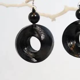 Collana con perle grandi in legno riciclato scolpite a mano
